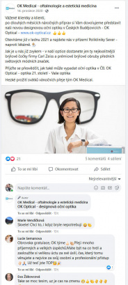 Zároveň také nabízí službu privátního očního vyšetření pro klienty, kteří nechtějí čekat dlouhé měsíce, než jejich vyšetření uhradí zdravotní pojišťovna či očního lékaře nemohou sehnat.