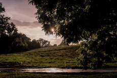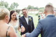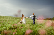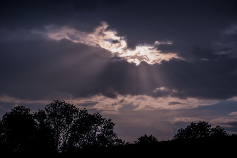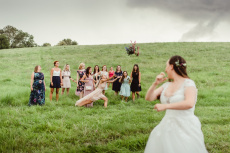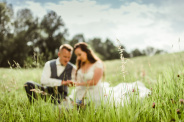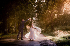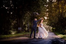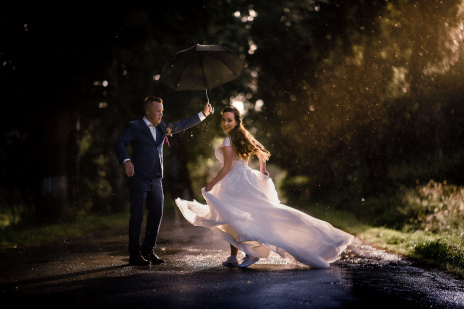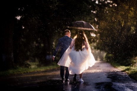 Na obřad občas vysvitlo sluníčko, po obědě nám několikrát sprchlo. V jeden okamžik, při zapadajícím slunci jsem novomanželům nabídl možnost zmoknout. Venku prší, docela dost, ale do toho zapadá slunce a prosvicuje nám onen déšť.. vypadá to absolutně úžasně, budou to skvělé fotky. Jestli máte chuť, pojďte ven.. za 15 min to kouzlo okamžiku zmizelo. Fotky však zůstaly a jsem za ně moc rád ;-)