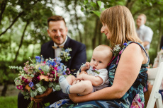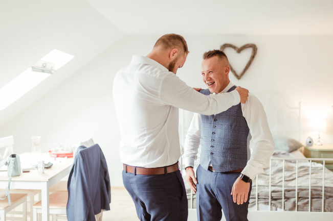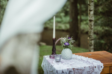 Vzpomínám si, že ráno jsem běhal v trávě v jiných botech či snad na boso, abych vydržel do podledních hodin.. tráva byla plná rosy a prostory jsou tam rozlehlé. Mezitím, co probíhali přípravy, jsme si rozvěsili šaty ženicha a nevěsty na místě obřadu. Oni se mezitím starali o svého synka, svůj vzhled a své sjíždějící se hosty.