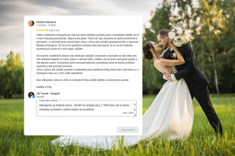 "Děkujeme Jirkovi a Alče za perfektně odvedenou práci a skvělou atmosféru během focení nejen během obřadu ale i příprav a vůbec celého svatebního dne. Po několika účastech na jiných svatbách, jsme nechtěli experimentovat s levnými fotografy a rovnou jsme šli na jistotu. Jsme oba hodně nároční a ode všech dodavatelů jsme očekávali profesionální výkon, ale Jirka předčil i naše velká očekávání. Nestalo se, abychom čekali než vymyslí, jak máme stát, nebo kde se budeme fotit a s kým. Byl vždy tam, kde být měl, aby mu nic neuniklo a přesto se nikomu nepletl do cesty, jakoby tam nebyl... Na jiných svatbách jsme se nesetkali s tím, že by měl fotograf s sebou asistentku, ale dokud to nezažijete, nevíte, že ji vlastně chcete a potřebujete. Jirka tvoří s manželkou Alčou vynikající pár a při práci se přirozeně doplňují. Hned to neoceníte, ale byly desítky momentů, kdy je její pomoc nedocenitelná, ať už je to asistence při oblékání, srovnávání šatů, šperků při každém pózování nebo podání kapesníčku. A zapomeňte, že od toho máte svědkyní či družičky, žádnou z nich nenapadne to, co je potřeba v ten daný okamžik, žádná z nich nebyla na tolika svatbách... Asistentka je druhýma očima fotografa, a jak známo, více očí... a tak Vám žádnou fotku nezkazí přetočený šperk, pokroucené šaty nebo nudle u nosu ;-) Děkujeme Alčo!"