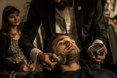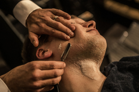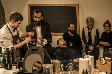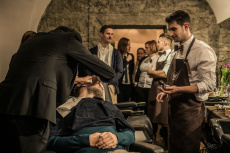 V reportáži z otevření si můžete povšimnou prostředí, vybavení a procesu oholení muže břitvou do hladka. S použitím břitvy totiž vydrží pleť hladká několikrát déle..