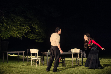 Bylo velmi zajímavé být účasten kostýmové zkoušky, tedy těsně před plánovanou premiérou. Řešily se drobné provozní detaily kulis, ne každý ma svůj kostým, pozice zpěváků, herců.. ale přes to jejich výkony působily finálním dojmem. Zažili jsme i krátkou pauzů způsobenou přeháňkou.