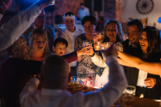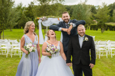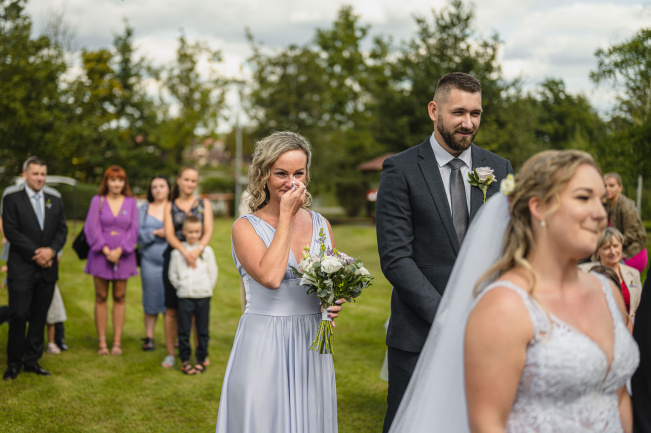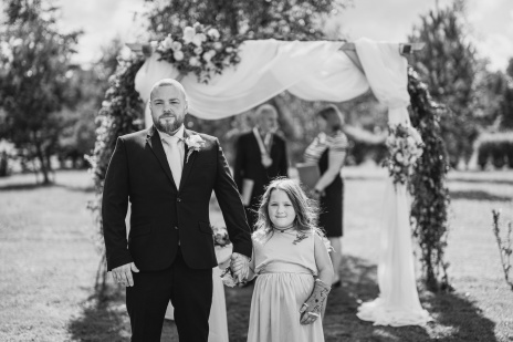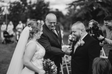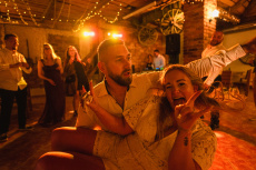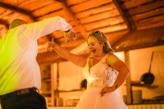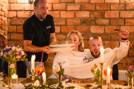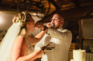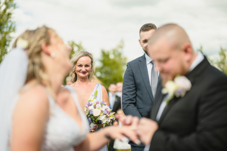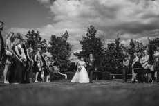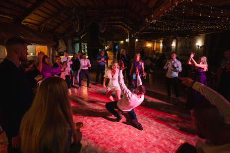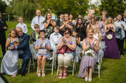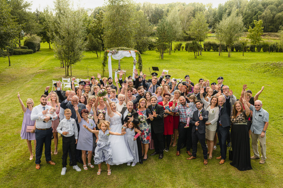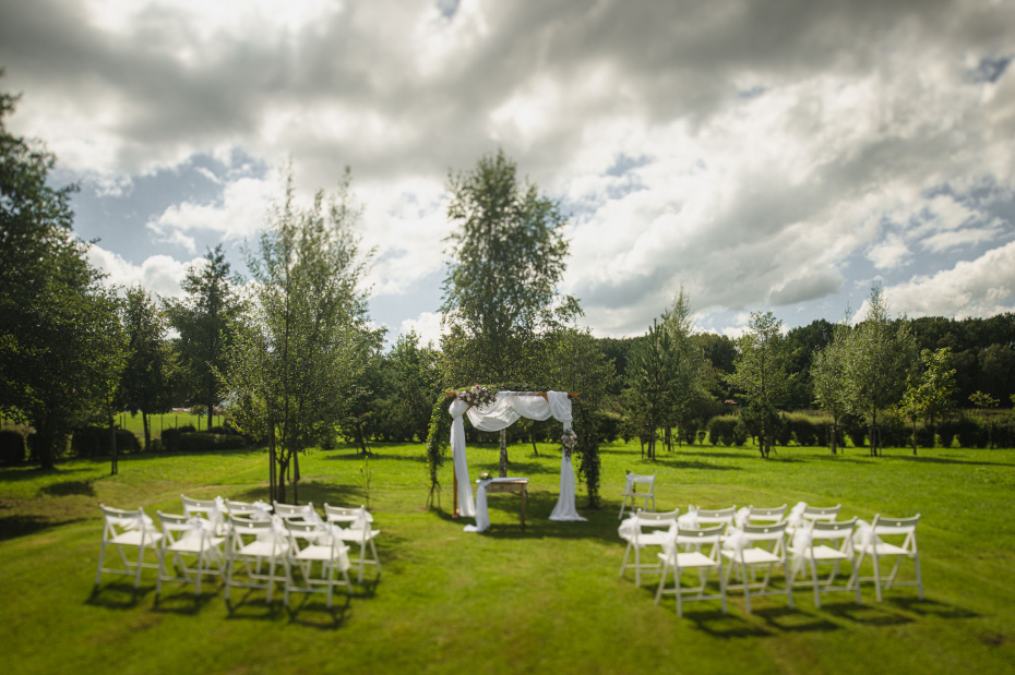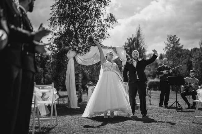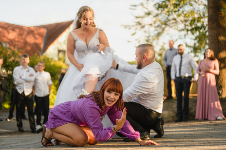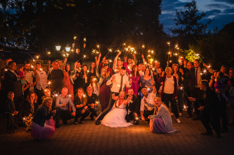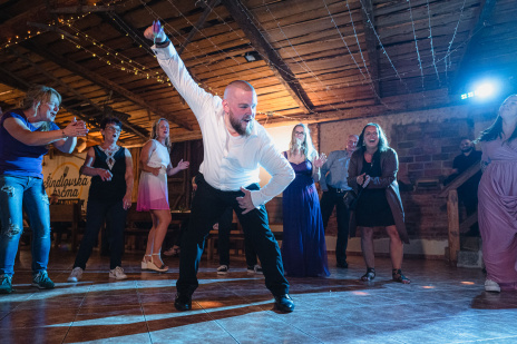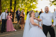 Obřad proběhl na louce u rybníka vedle krčmy. Nazvučil a provázel nás jím DJ Smile - Jirka Ježek. Stejně tak s mikrofonem a hudbou dovtářel atmosféru pro hod kytící, prskavky a večerní pařbu na parketu.