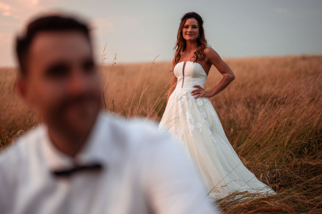 Obřad proběhl v na poutním místě Lomec pod vedením šikovného kněze Josefa Prokeše. Následně jsme se přesunuli do Parkhotelu Hluboká. Pro portrétní snímky jsem vybral místo na kopci nad Hlubokou.. z oné louky plné krásné dlouhé suché a nekonečné trávy jsem byl nadšen!