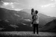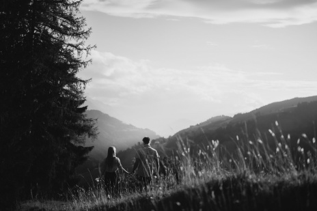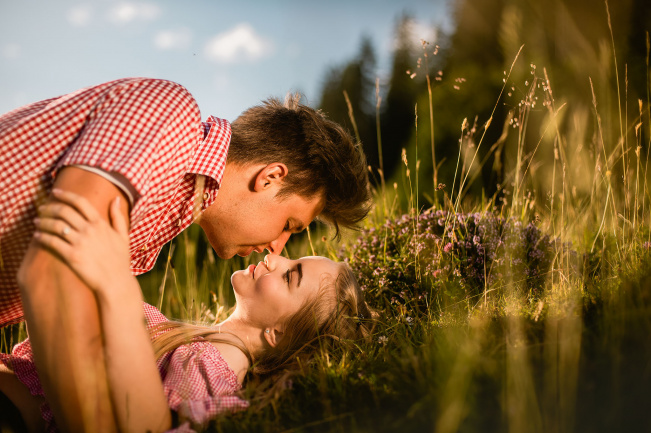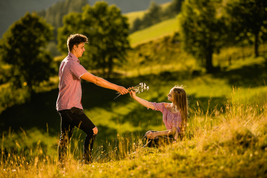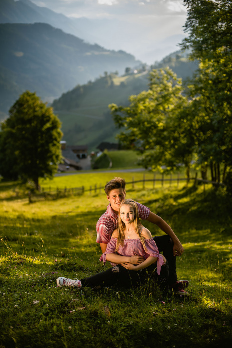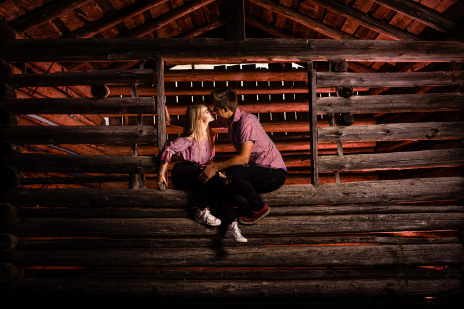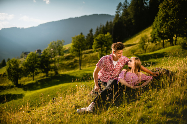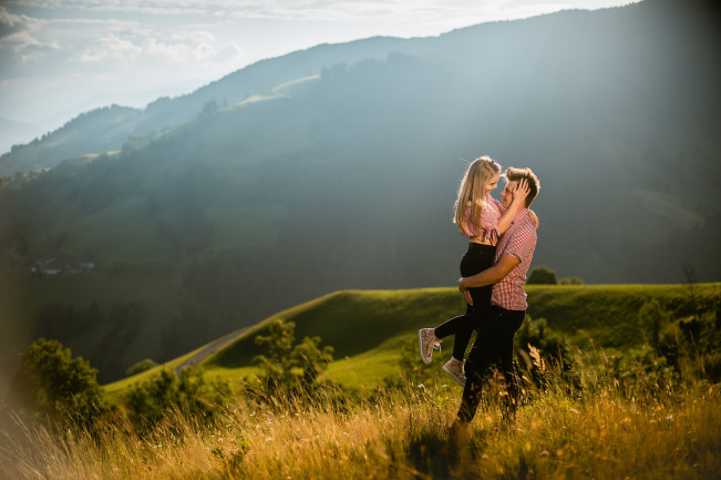 Se snoubenci jsme se sešli již den před svatbou - u nich doma ve Wagrainu. Protože zde vyrůstali, přijde jim okolí takové samozřejmé.. pro mne jako fotografa je to samozřejmě svátek. Jak úžasně rozličné prostředí než známe z jižních Čech! Při západu slunce jsme nafotili portrétní snímky Hannah a Bastiana.
