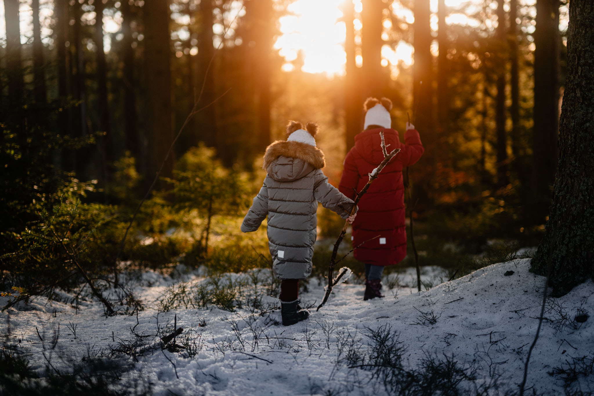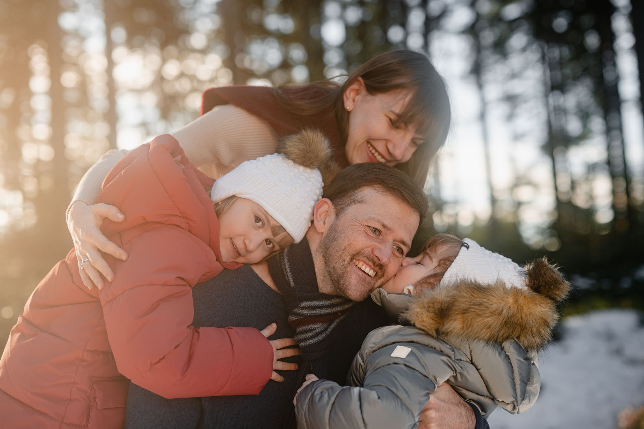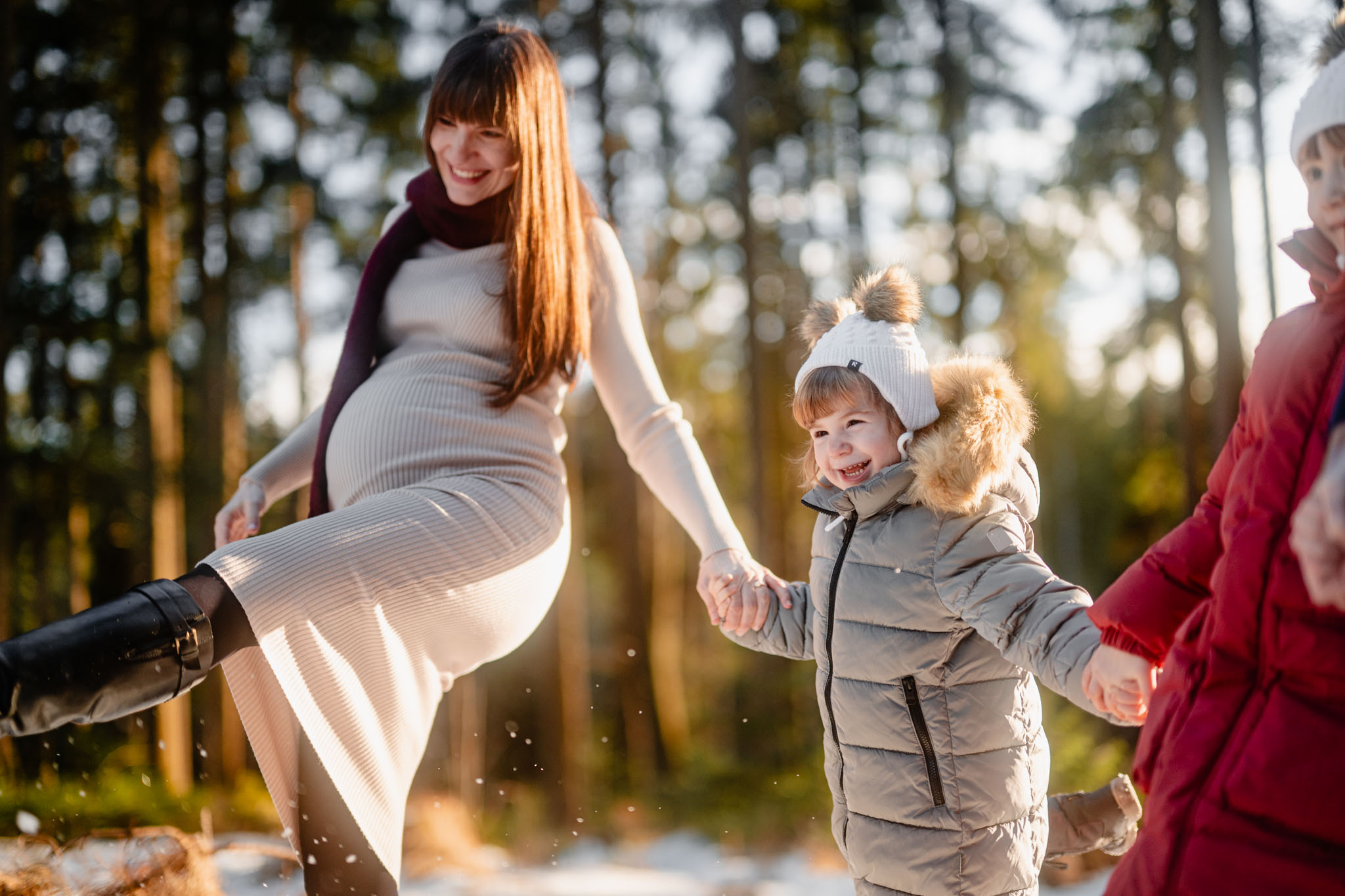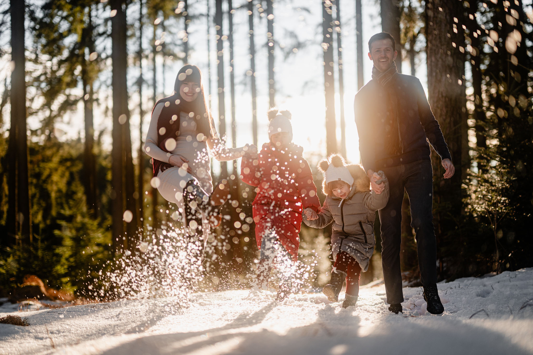 Zimní focení na kopci nad městem, kde bydlí, má své specifické kouzlo. Tlumené barvy, měkké světlo a klidná atmosféra, která nechává vyniknout to podstatné – vztahy. Tentokrát už ale nebylo tak poklidné. Helenka si focení užívala už se sestrou Irenkou a energie byla hned znatelně jiná. Více pohybu, více smíchu, více momentů, které nejdou naaranžovat – jen se stanou.