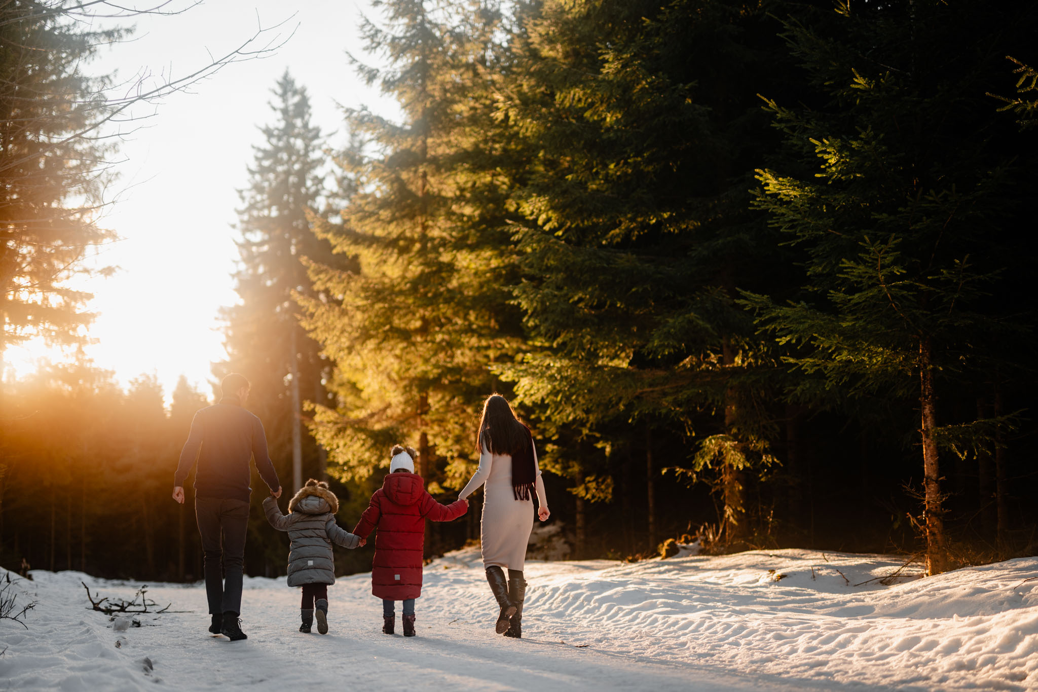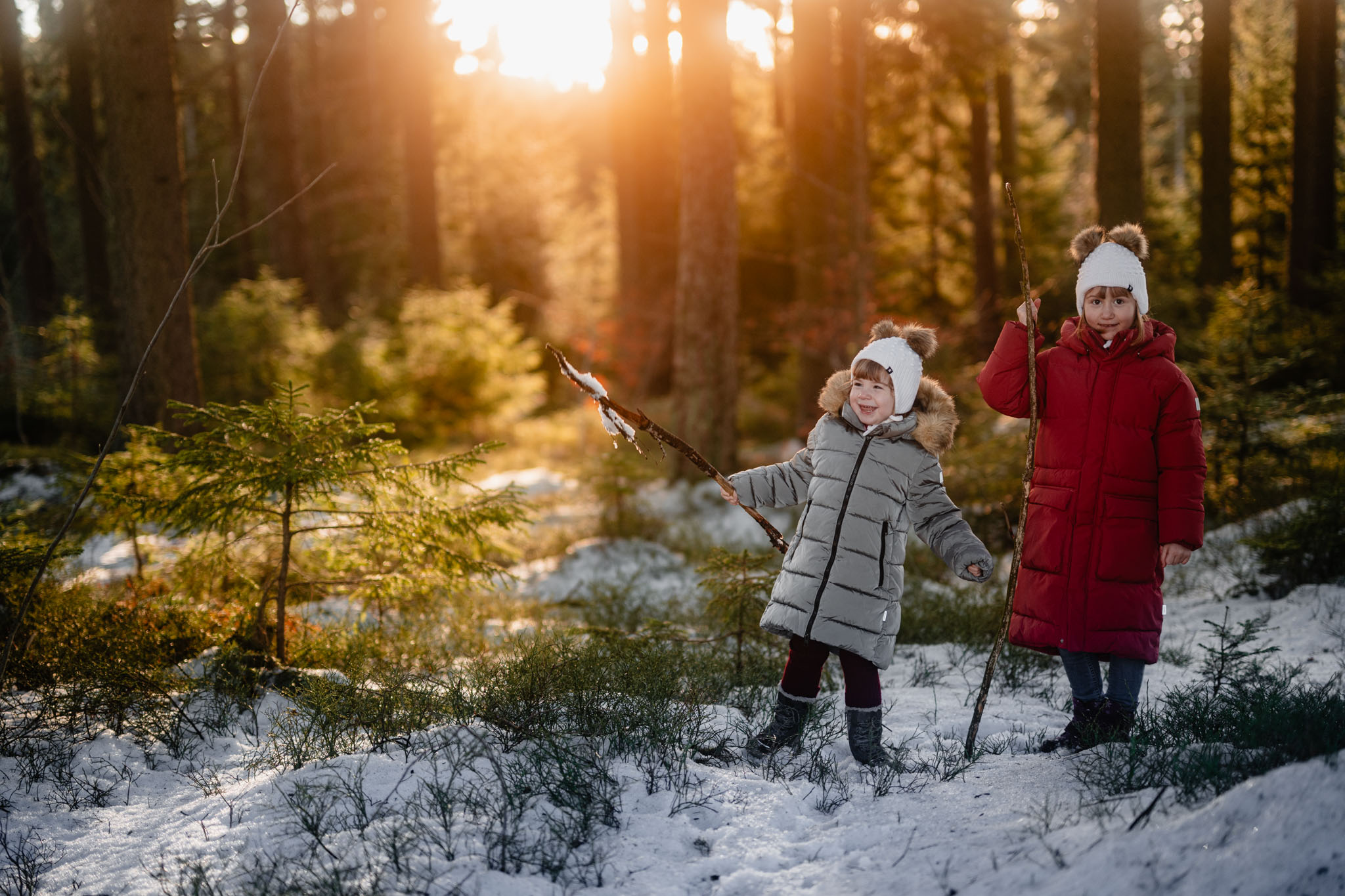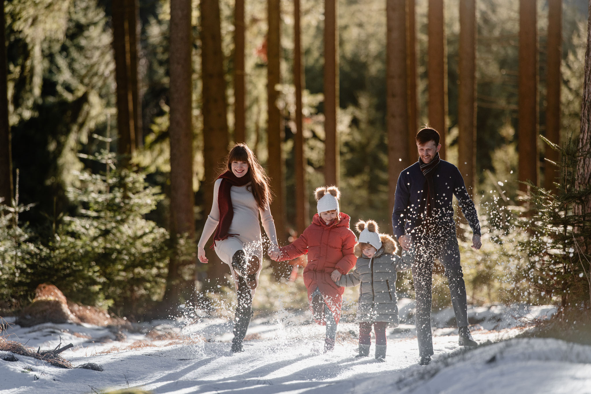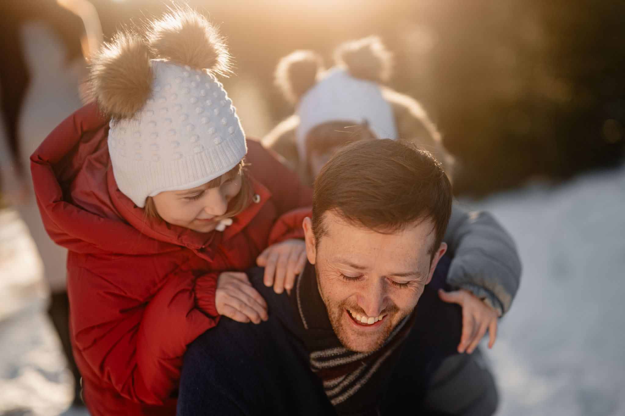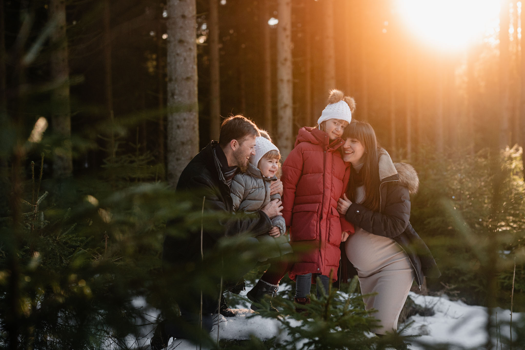 Zimní focení na kopci nad městem, kde bydlí, má své specifické kouzlo. Tlumené barvy, měkké světlo a klidná atmosféra, která nechává vyniknout to podstatné – vztahy. Tentokrát už ale nebylo tak poklidné. Helenka si focení užívala už se sestrou Irenkou a energie byla hned znatelně jiná. Více pohybu, více smíchu, více momentů, které nejdou naaranžovat – jen se stanou.