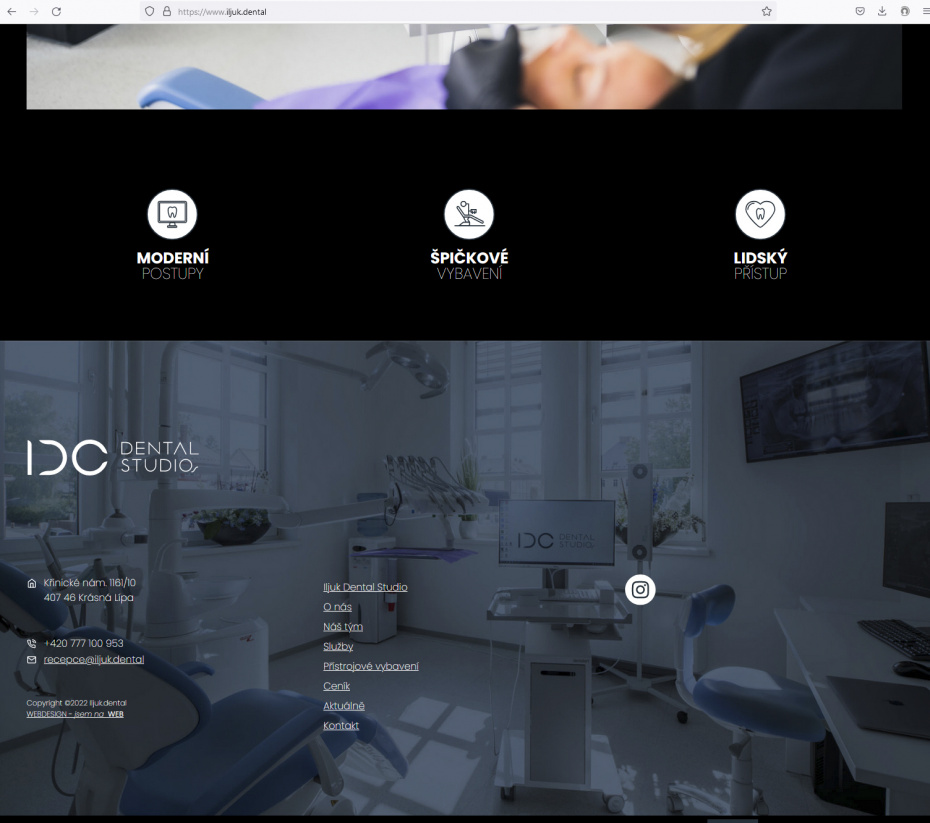 Myslím si, že v Iljuk Dental Studio se bát nemusíte. Krásné místo na náměstí v Krásné Lípě, stejně tak se vám bude líbit uvnitř. Sourozenci Jana a Anatolij pracují s nejmodernějším vybavením společně s dalšími členy týmu. Součástí studia je i zubní laboratoř, kde zas s dlouholetými zkušenostmi působí jejich otec.