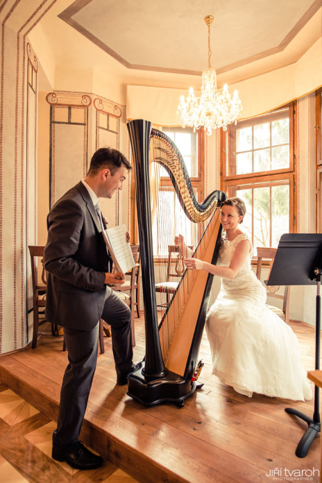 Byl jsem nadšen z atmosféry místa - parku, živého doprovodu na harfu při obřadu, stylového oblečení a ochotě personálu, dekoracím v interiérech rozmanitých pokojů, sálů, schodišť.. mimochodem ke skvělému svatebnímu obědu mi pár metru od ucha hrála hudebnice na harfu - komu se to poštěstí?