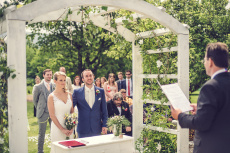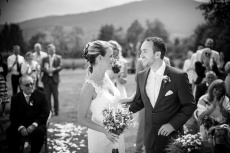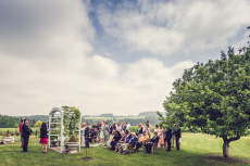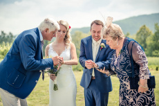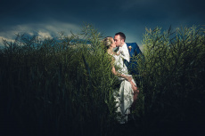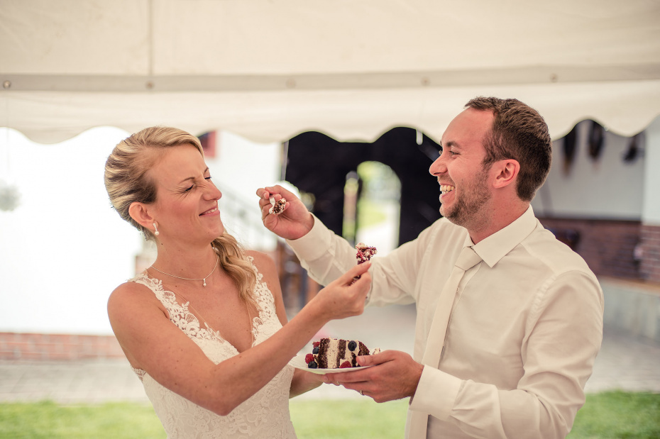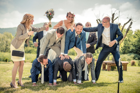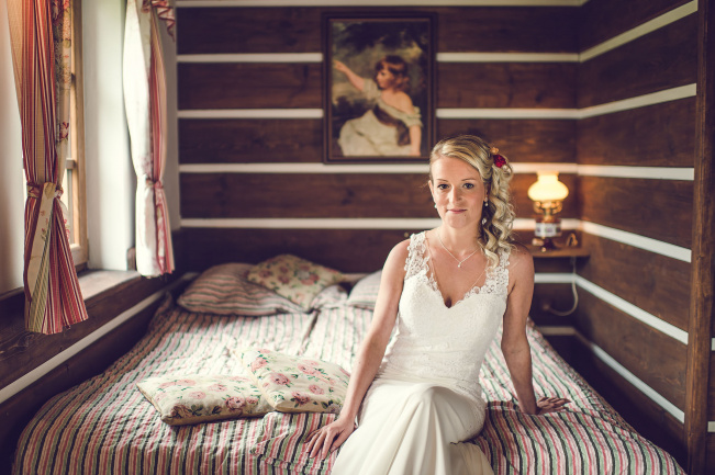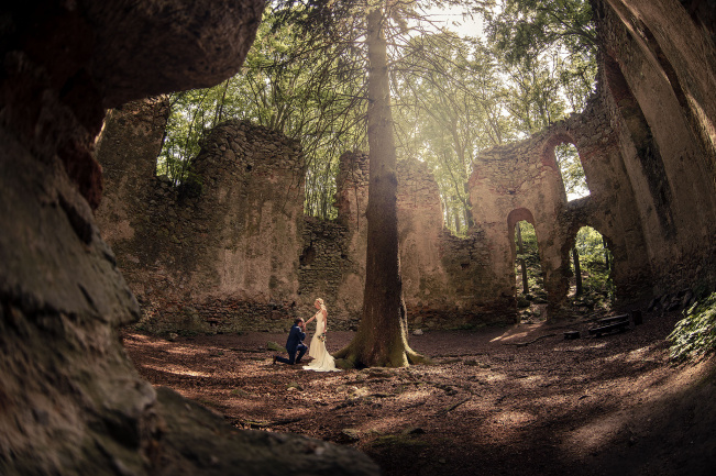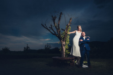 Vše probíhalo na jednom místě - Statku Blaník. Pro portrétní snímky novomanželů jsme se vyšplhali na samotnou bájnou horu. Kdybych to věděl předem, volil bych raději fotografický batoh než brašnu :) Skvělé však bylo, že to zvládla i Jana s Milem.