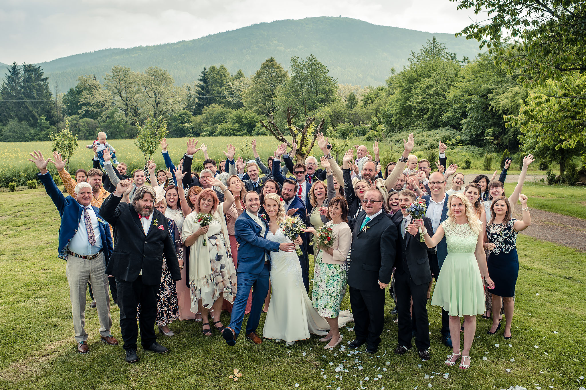 Vše probíhalo na jednom místě - Statku Blaník. Pro portrétní snímky novomanželů jsme se vyšplhali na samotnou bájnou horu. Kdybych to věděl předem, volil bych raději fotografický batoh než brašnu :) Skvělé však bylo, že to zvládla i Jana s Milem.