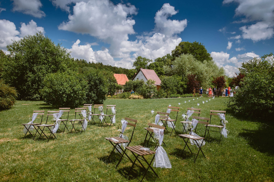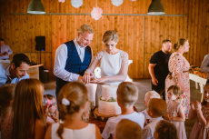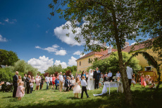 Svatba se odehrávala na v příjemném prostředí Venkovské usedlosti Zahrádka u Českého Krumlova. Bylo na ní snad 30 dětí :) O jídlo se nám postaral Adam Hoďánek.