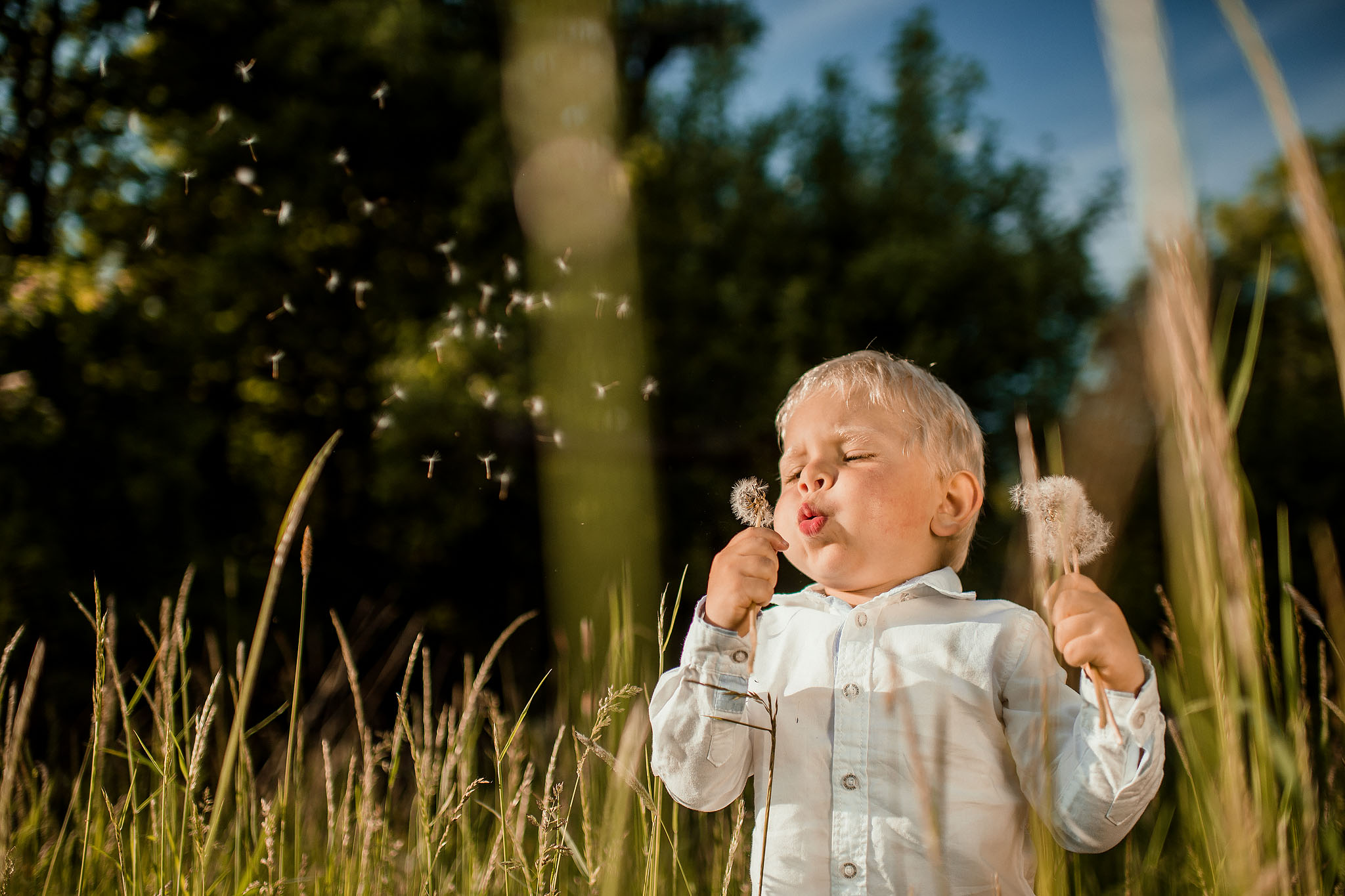 Jako lokaci pro focení nevěsta vybrala louku, co mají za domem. Řekl bych, že úplně nevěřila v její malebnost. Možná se bála mého názoru, protože sama ji má každý den na očích. Ale ono místo bylo pro dané focení zcela ideální ;-)