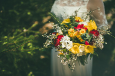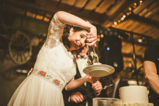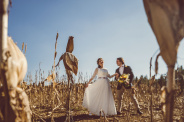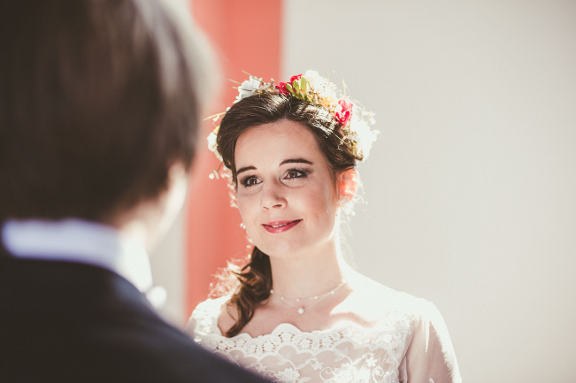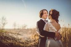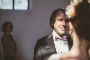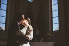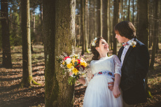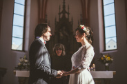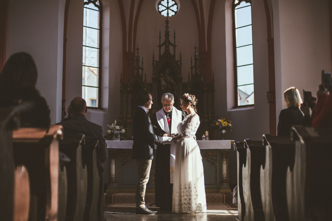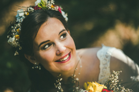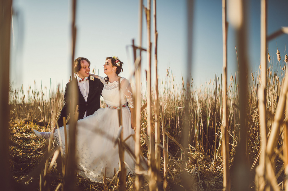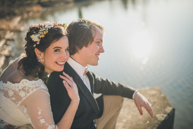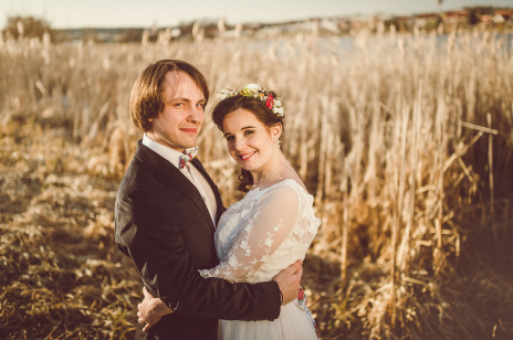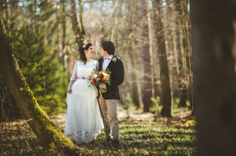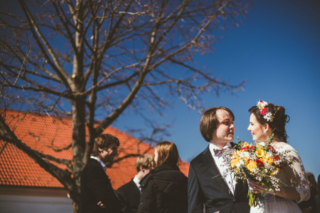 Obřad proběhl v kostele na návsi ve Starých Hodějovicích. Před kostelem jsme měli sraz s nevěstou a ženichem - ihned mne zaujali jejich doplňky a jarní barvy v kytici. Několik portrétních fotek jsme stihli pořídit před hostinou v Šindlovské krčmě a zbylou část v podvečer. To už nám veselí doprávázela středověká kapela Krless.