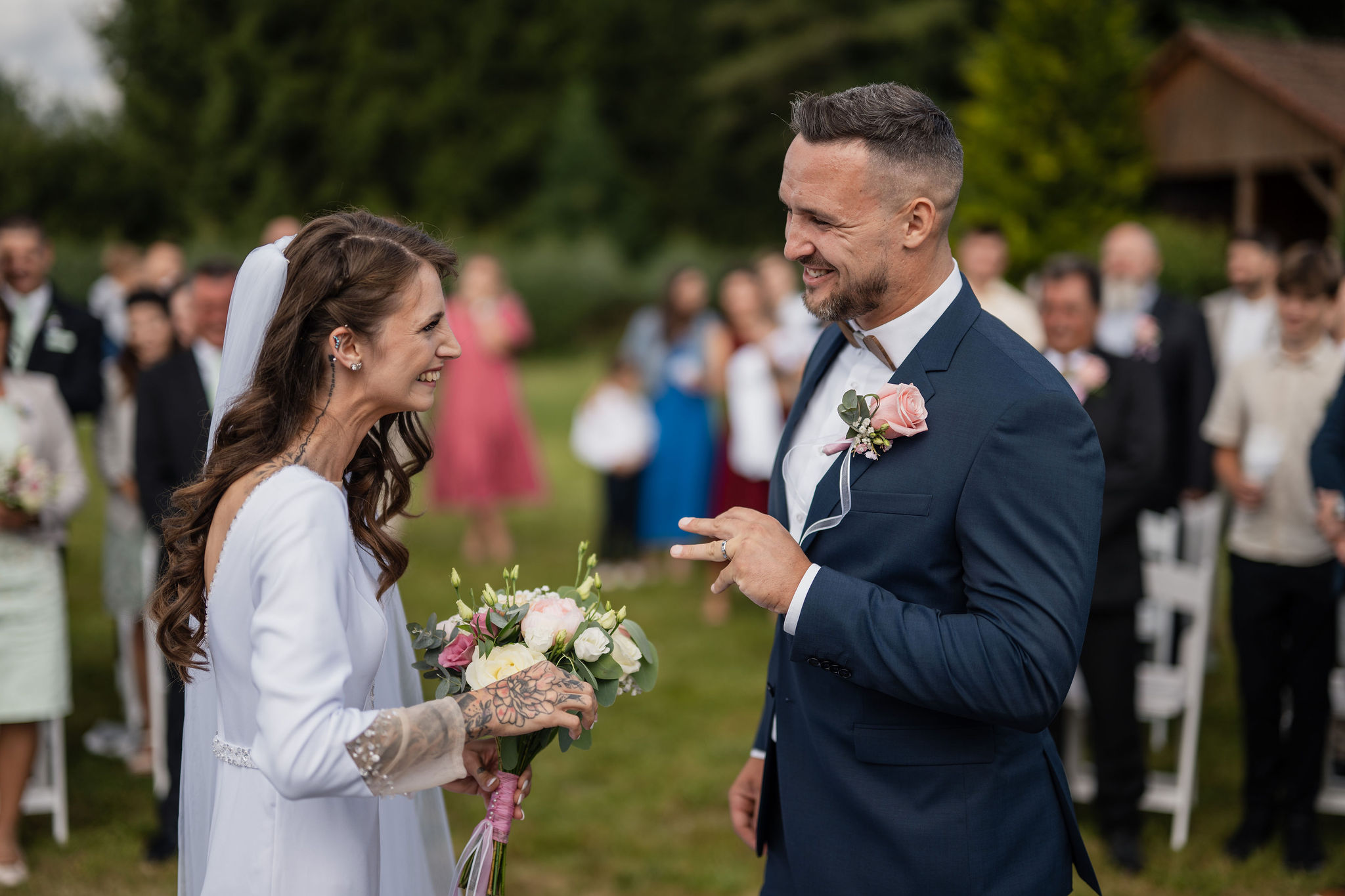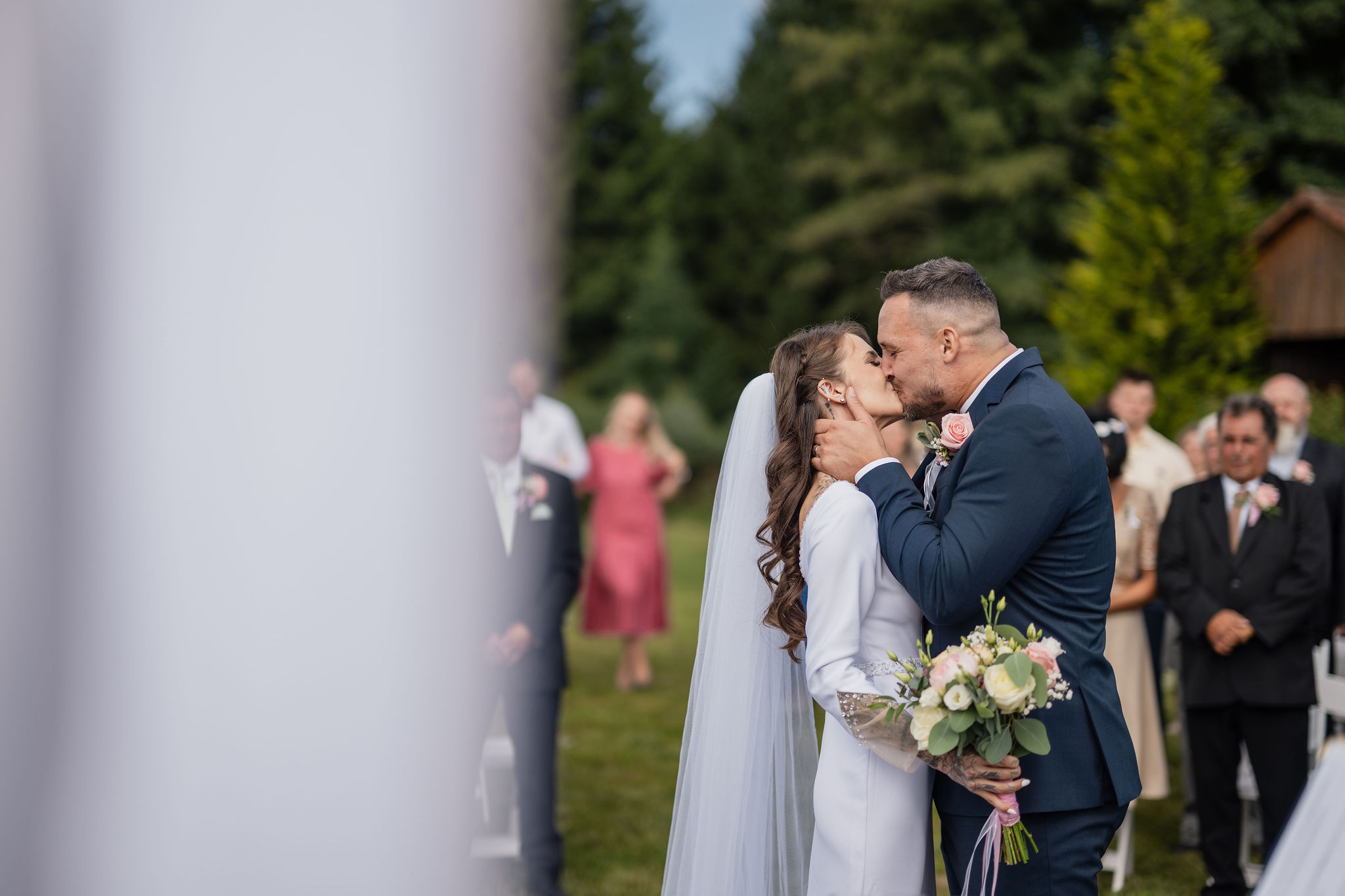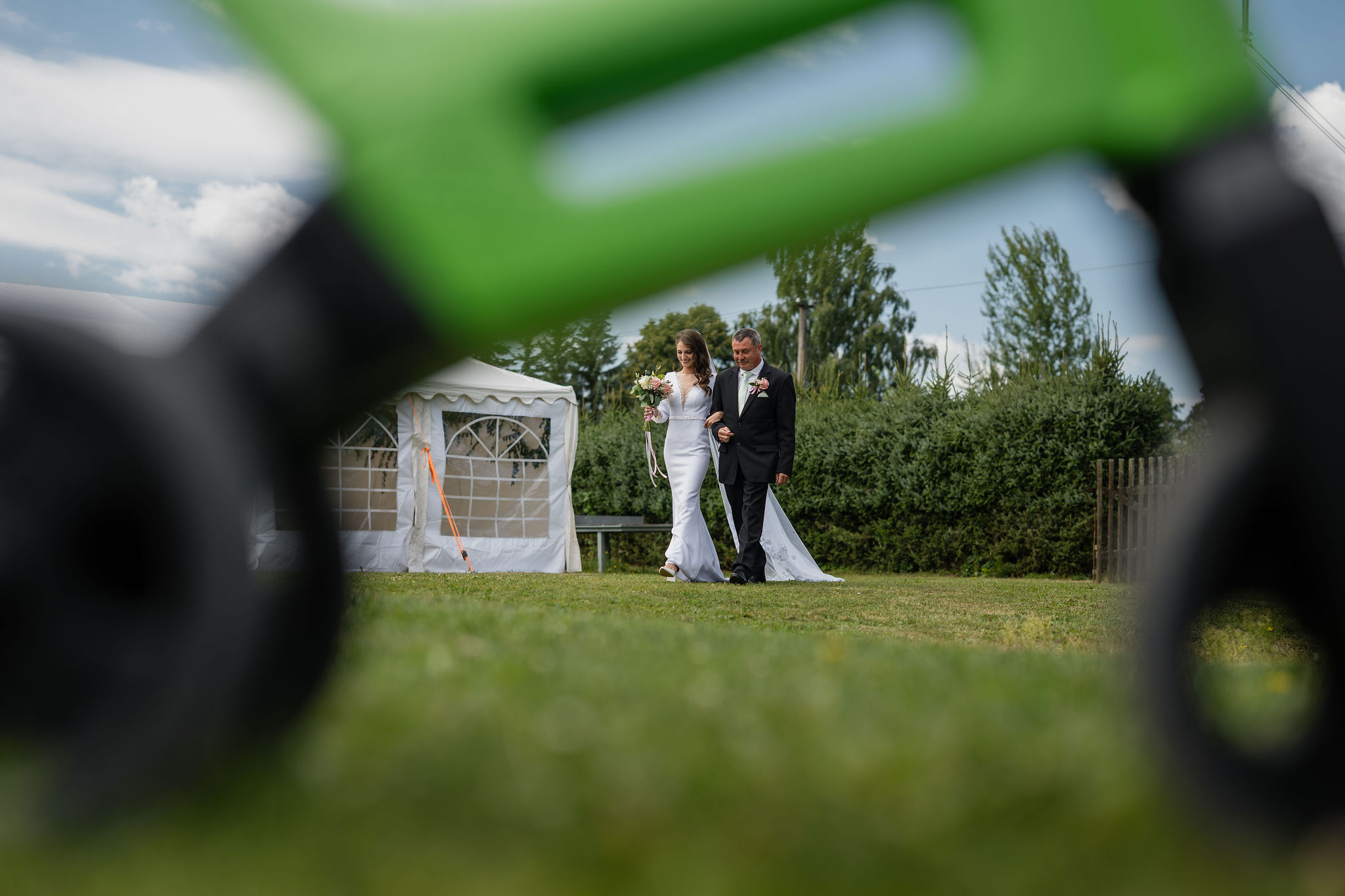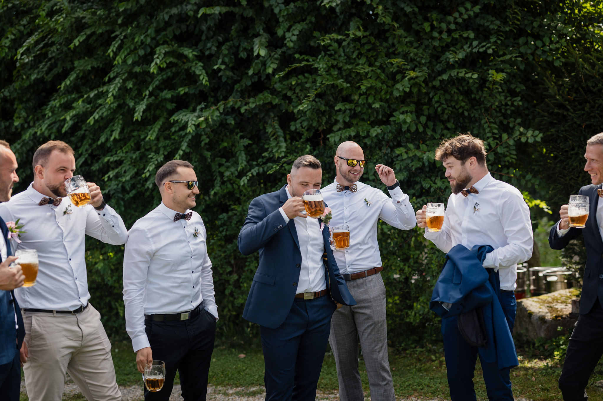 Celý den se odehrával u řeky – v penzionu U Černého Čápa. Bylo horké léto, slunce svítilo od rána do večera a svatba měla spíše podobu jedné velké vysmáté párty. Všude kolem byla spousta kamarádů, kteří se postarali o to, aby byl den plný smíchu a energie. Atmosféra byla uvolněná, lehce bláznivá a přesně taková, jakou si Lucka s Ondrou přáli.