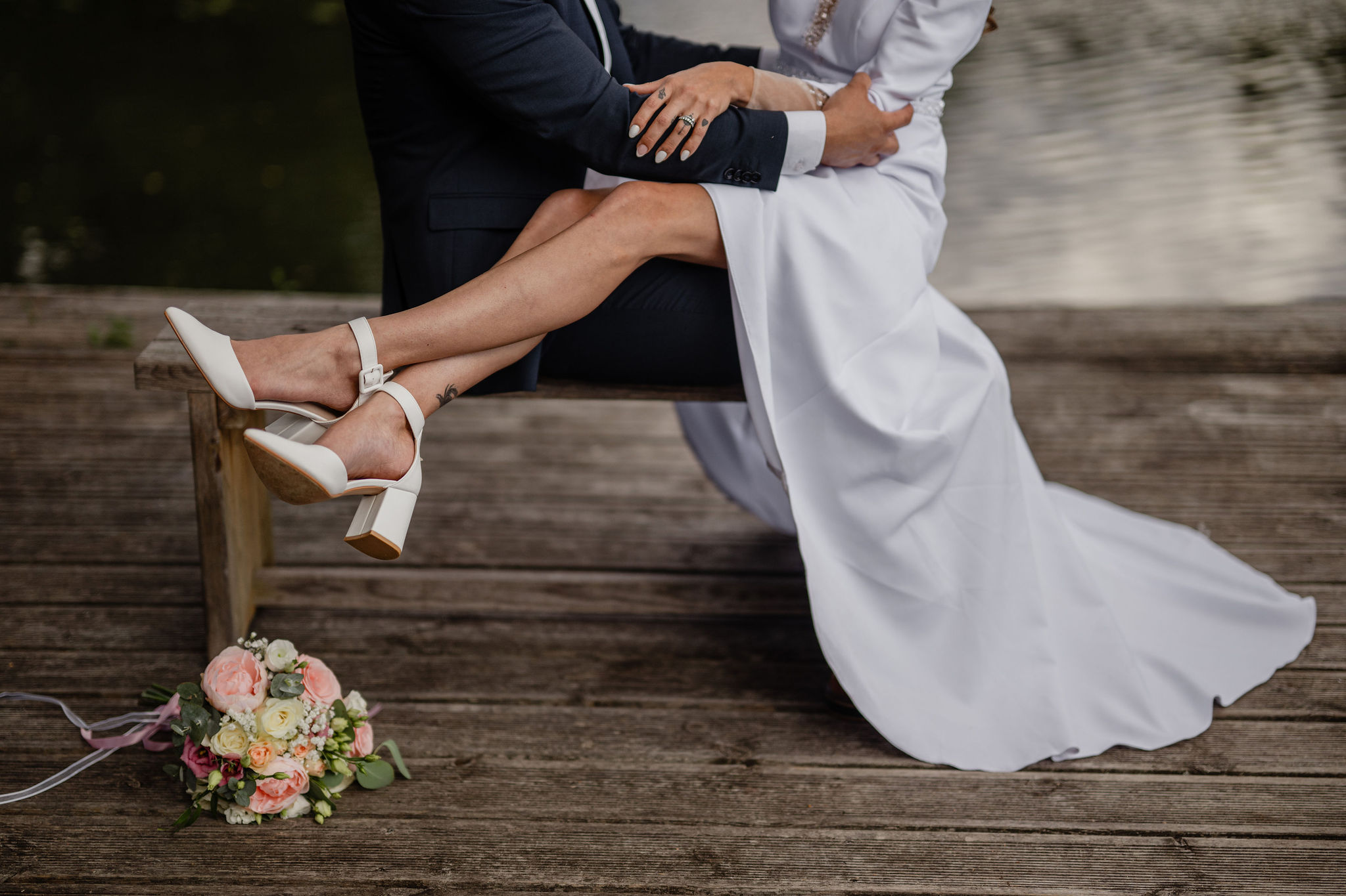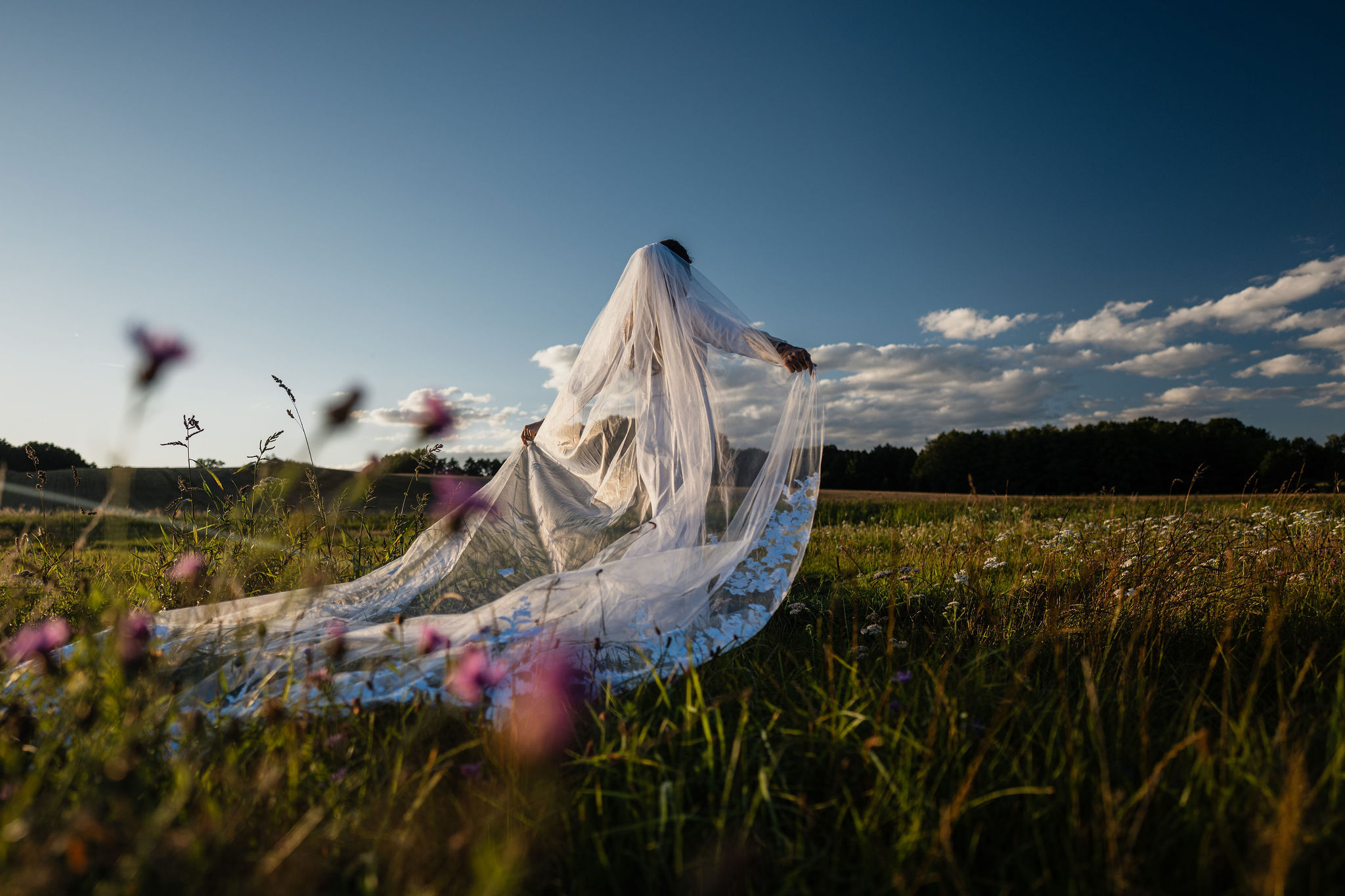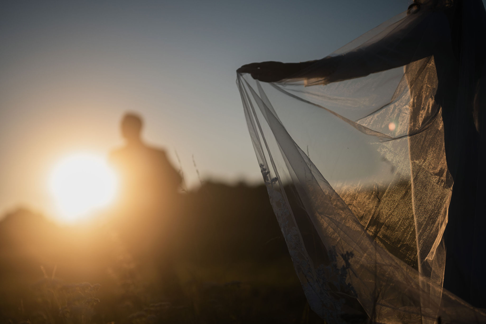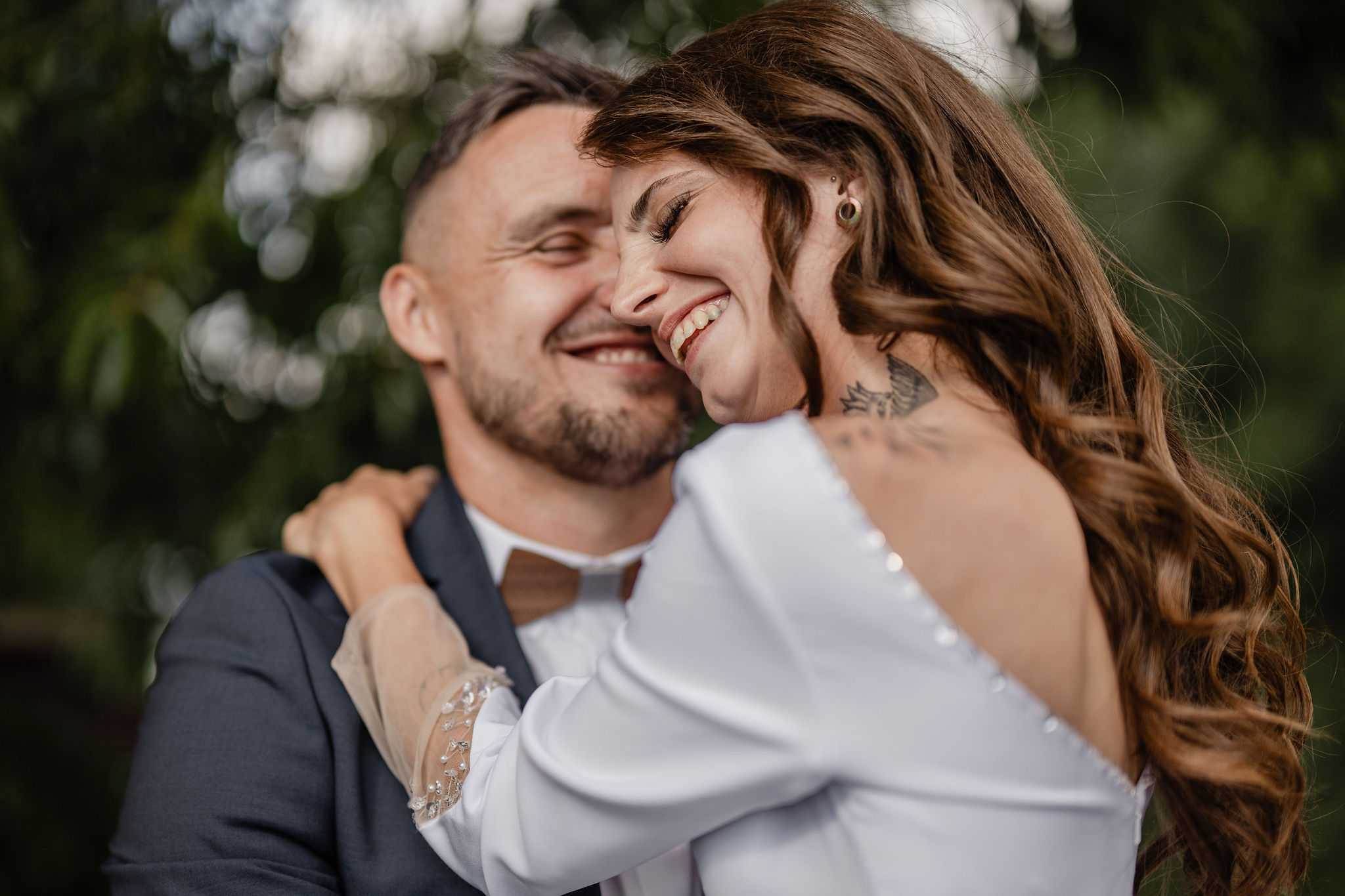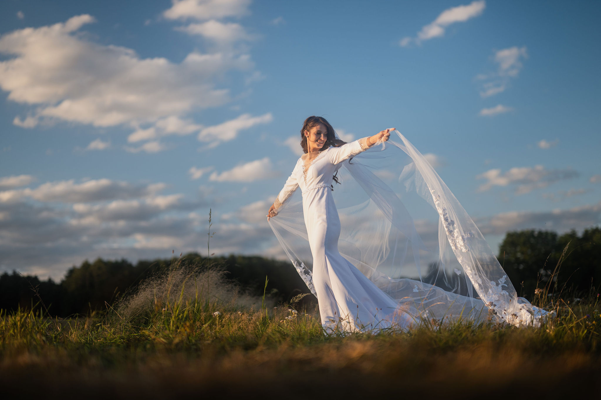 Fotili jsme hodně portrétů, ale nikdy to nebyla strnulá póza. Novomanželé se neustále smáli, reagovali při focení na mne a Alču, takže vznikaly spontánní, autentické snímky, ve kterých je radost i láska cítit na první pohled. Pro focení jsme využili okolí řeky a podvečer nás odměnil nádherným západem slunce nad kopci. Zlaté světlo podtrhlo atmosféru dne a dodalo fotografiím lehce snovou náladu.