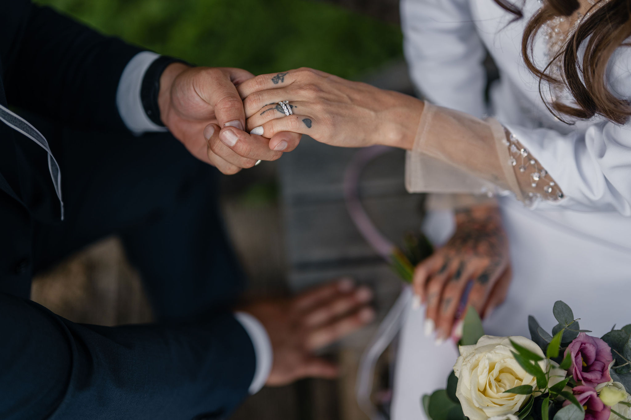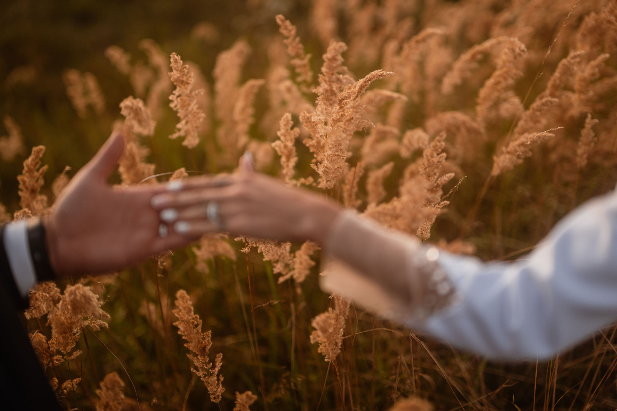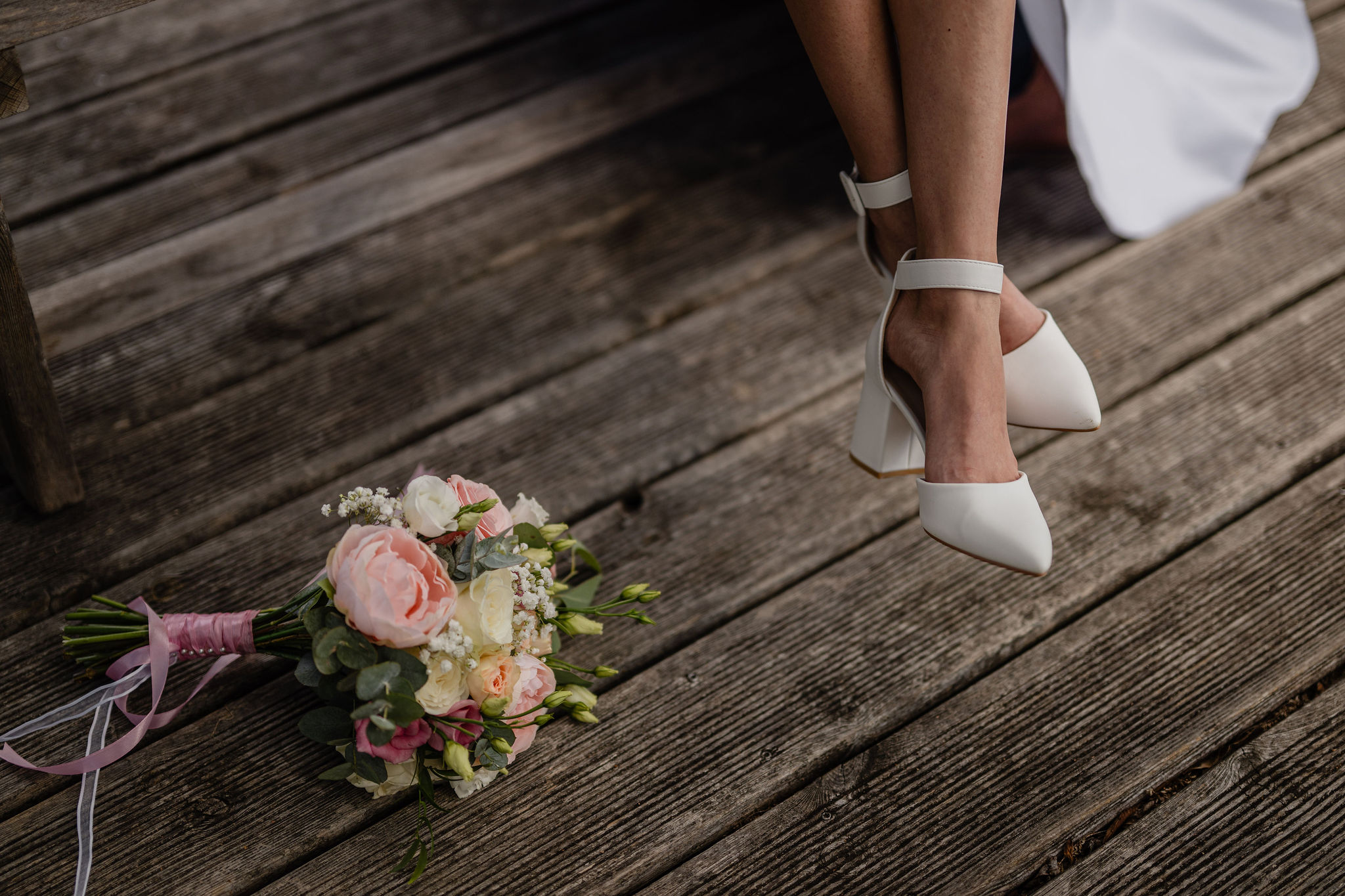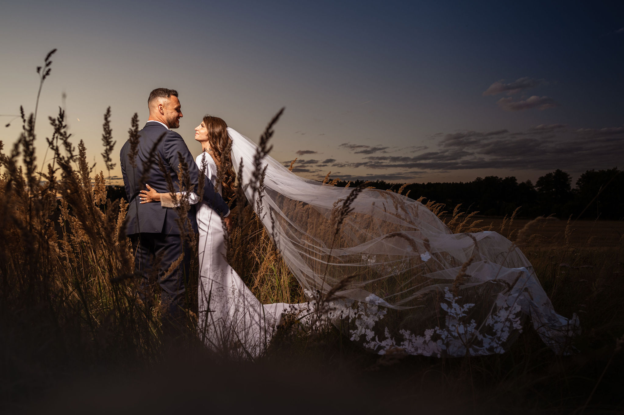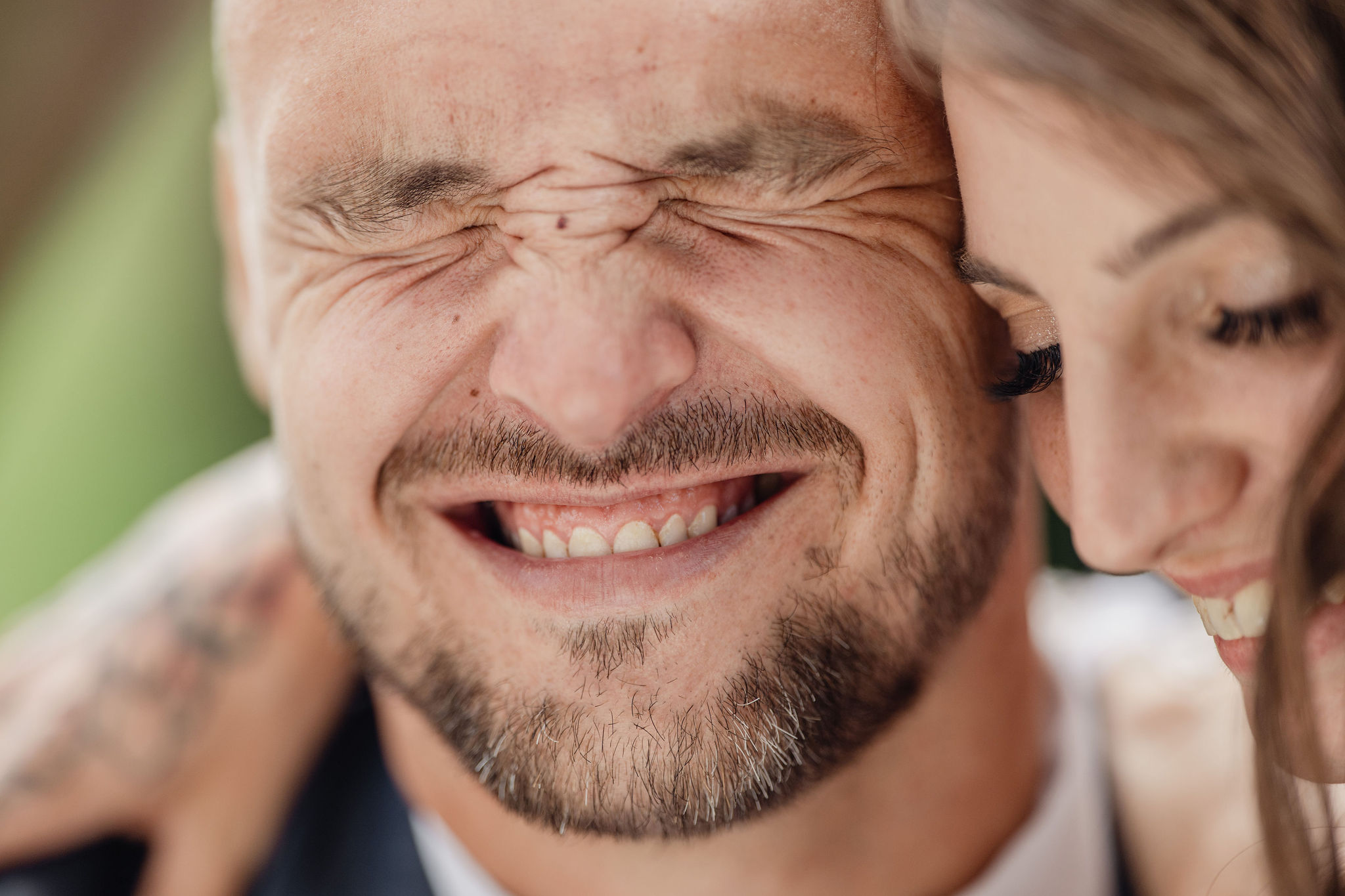 Fotili jsme hodně portrétů, ale nikdy to nebyla strnulá póza. Novomanželé se neustále smáli, reagovali při focení na mne a Alču, takže vznikaly spontánní, autentické snímky, ve kterých je radost i láska cítit na první pohled. Pro focení jsme využili okolí řeky a podvečer nás odměnil nádherným západem slunce nad kopci. Zlaté světlo podtrhlo atmosféru dne a dodalo fotografiím lehce snovou náladu.