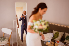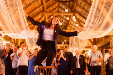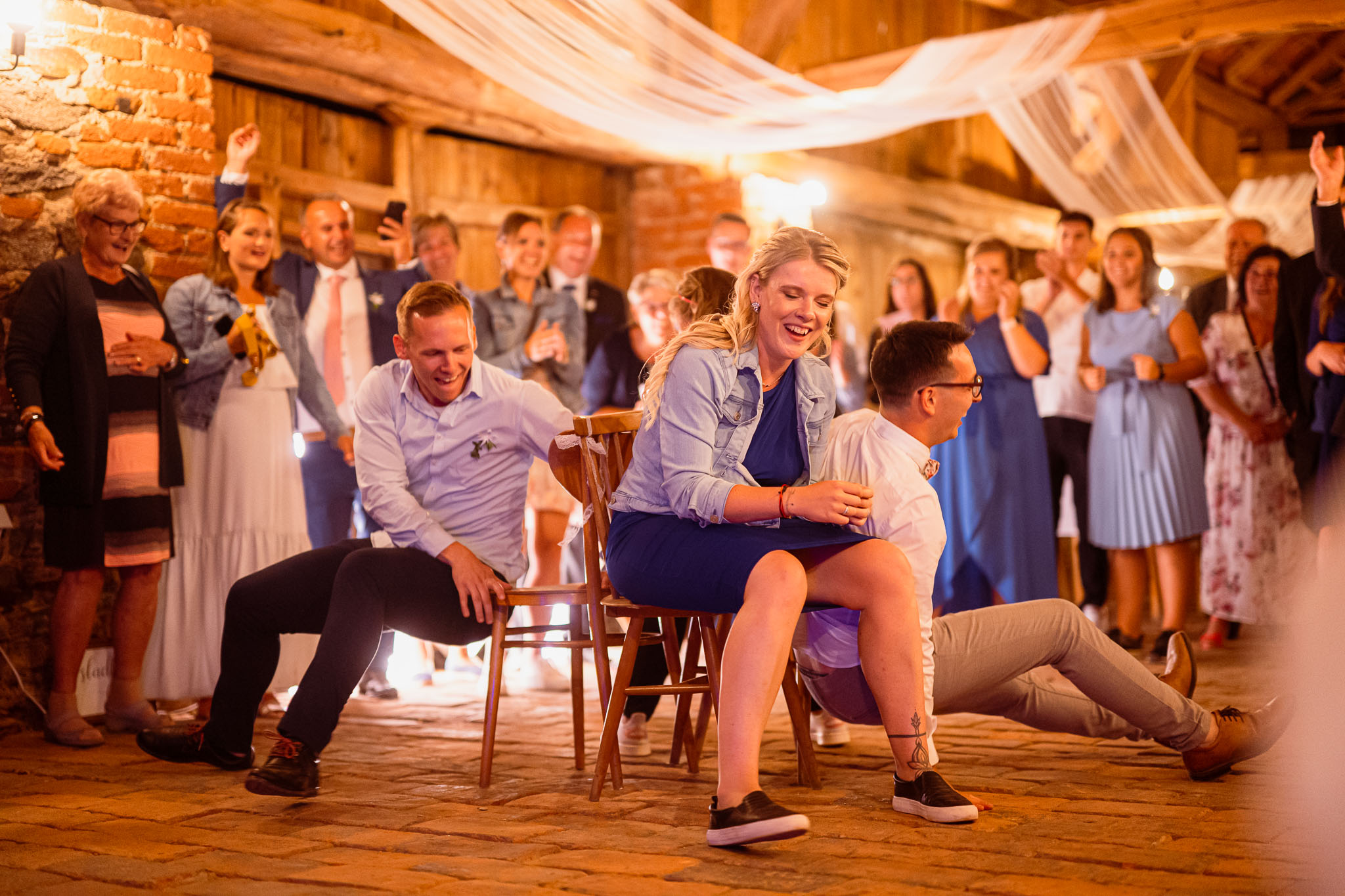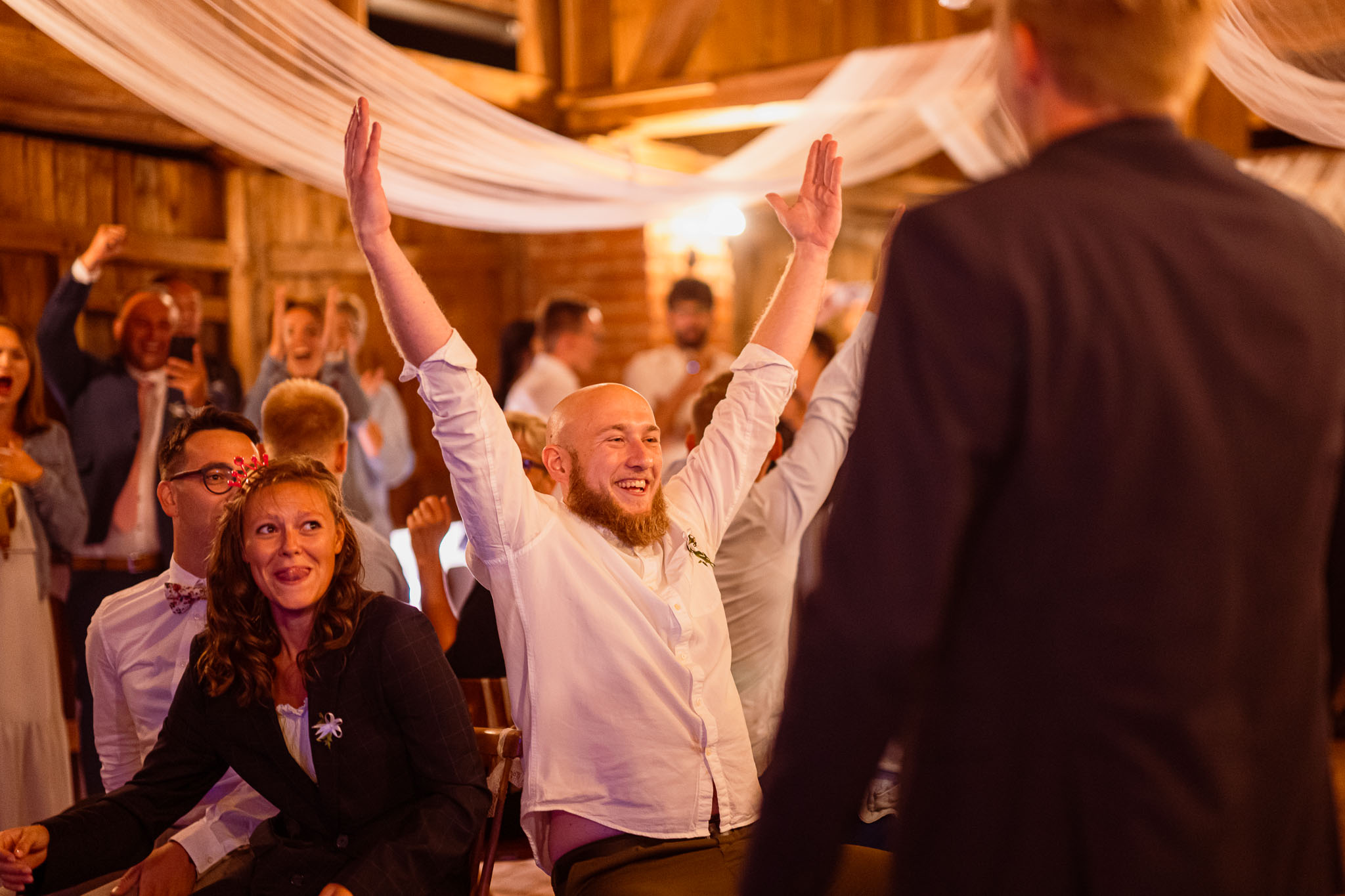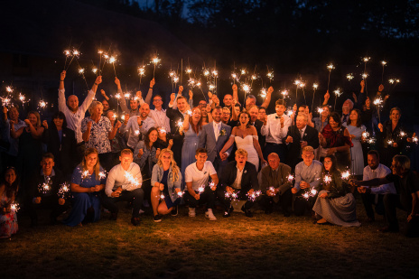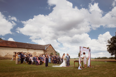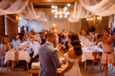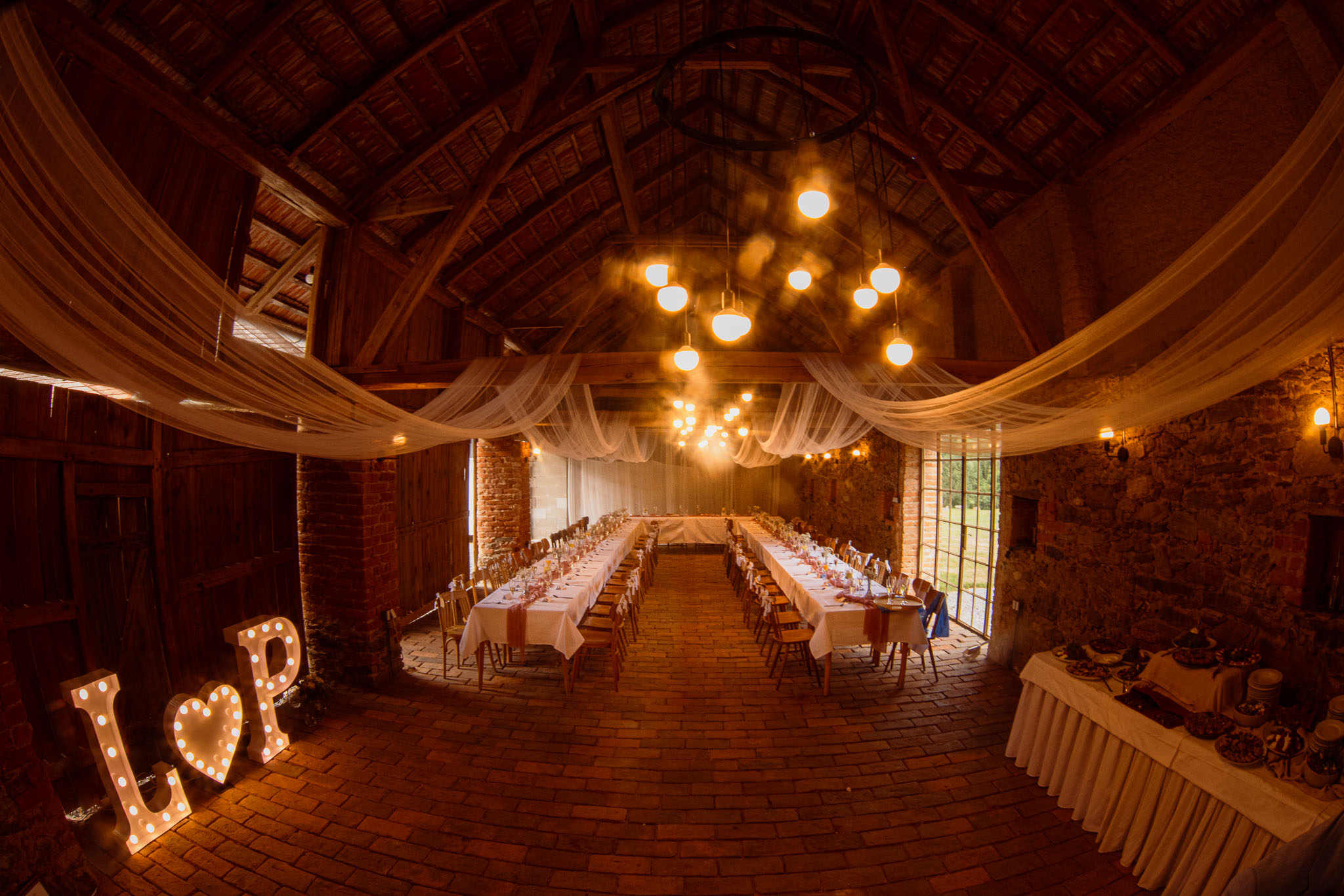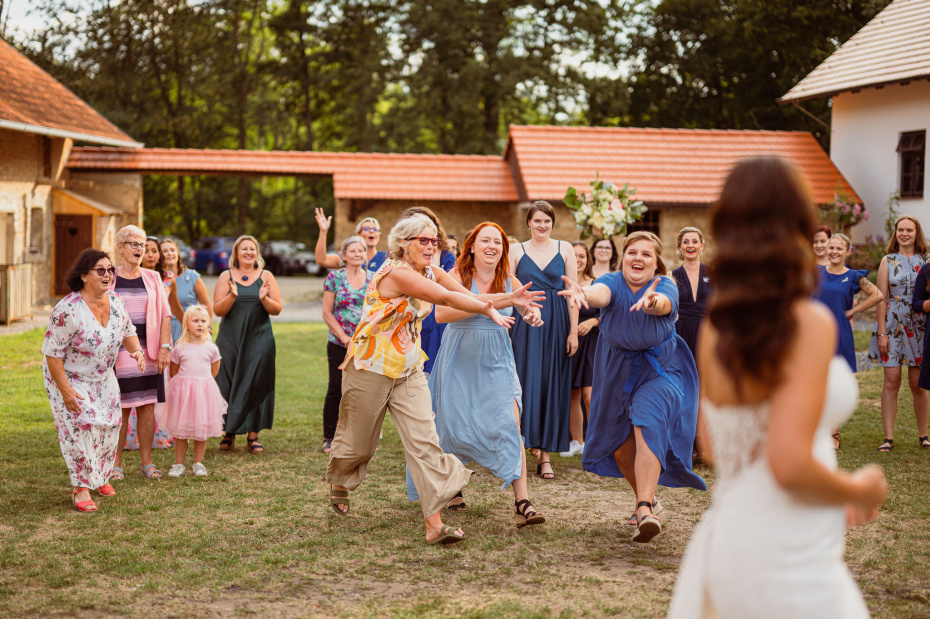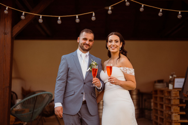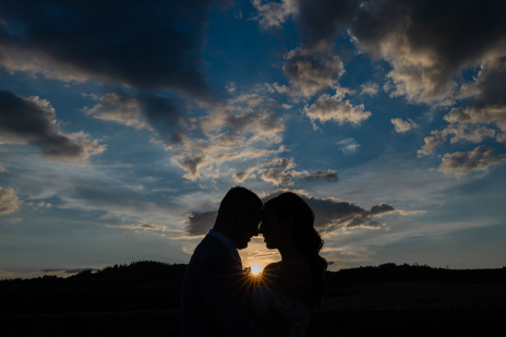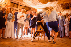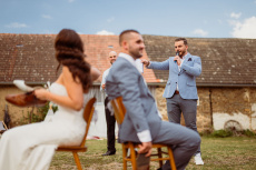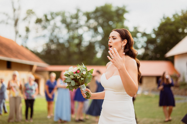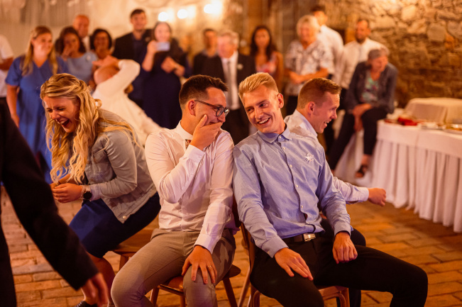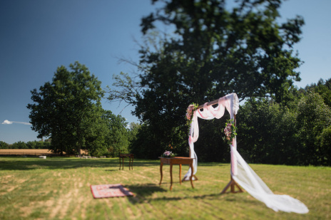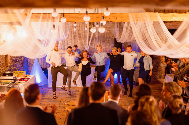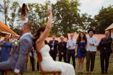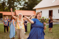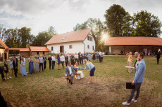 Všichni hosté měli sraz na statku. Ženich s nevěstou a nejbližšími přáteli tam byli již o den dříve. Vše se tak odehrávalo na jednom místě, pouze na podvečerní focení jsme odjeli pro změnu lokace kousek přes kopec. Obřadem provázel Pavel Janovský, stejně tak se postaral o program během dne a super večerní zábavu!
