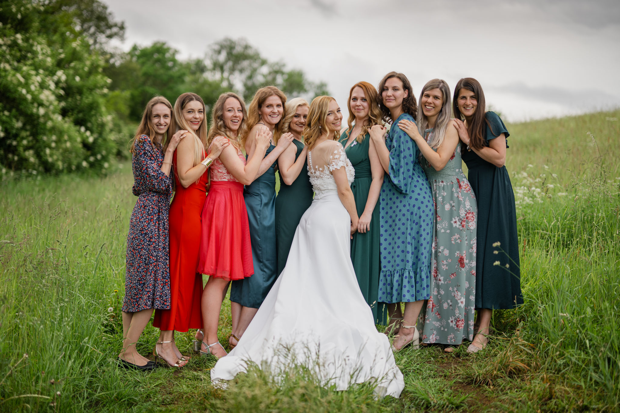 V onen den bylo deštivo, louky podmáčené, obloha zatažená. Nejvíce ale záleží na vás - snoubencích. Pokud se přes tohle přenesete, tak si svatbu s přáteli skvělé užijete a na fotkách je to pak vidět ;-)
