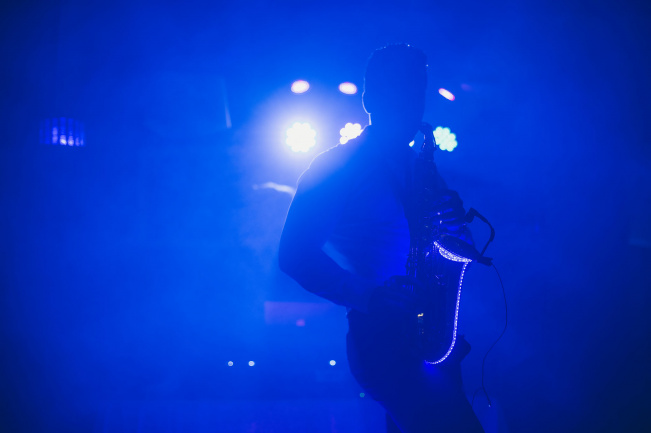 Součástí večerního překvapení byly nejen prskavky, ale vystoupení umělec a hudebník Vojta Sedlák - Saxokid. Fotil jsem mu svatbu a konečně jsem viděl (slyšel) jeho vystoupení celé. Pro onen večer a prostory se skvěle hodilo. Mrkněte na Vojtovo stránky - pusťte si jeho hudbu a s obdivem při tom listujte destinacemi, kde vystupoval.