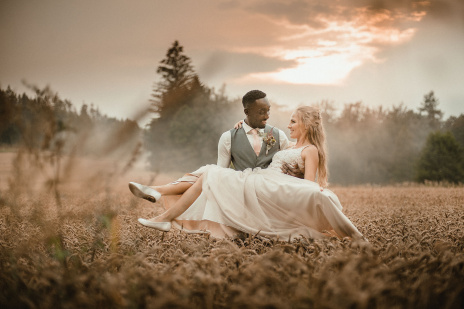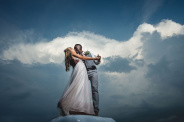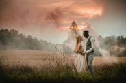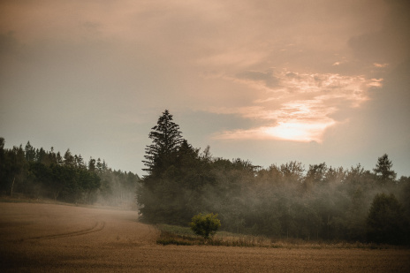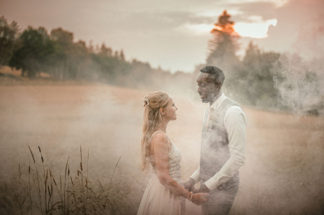 Děkuji mamince za poletování s dýmovnicí kolem novomanželů. Musím však upozornit, že část efektu mlhy byl skutečný - nastoupil po dešti se západem slunce. Před odjezdem se nám ještě ukázala modrá obloha a tak se novomanželé vyšplhali pro závěrečnou fotku do výšin..