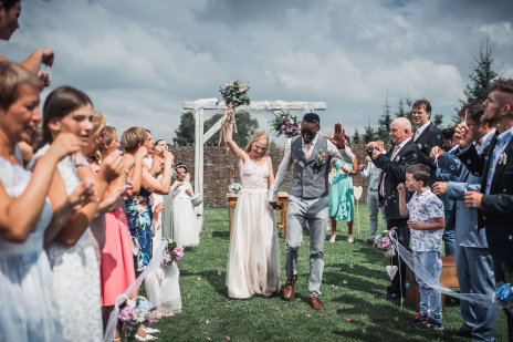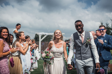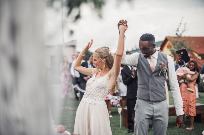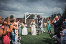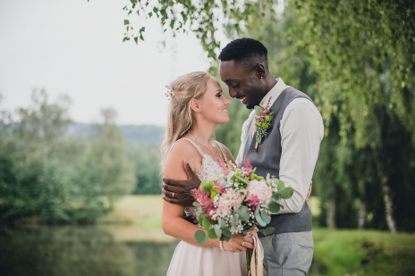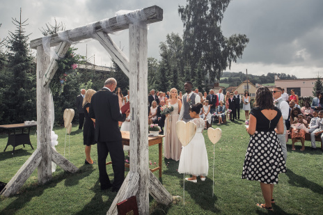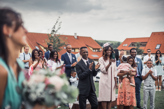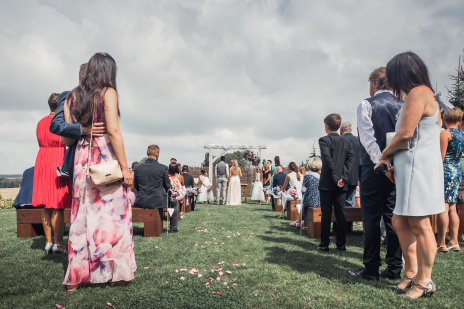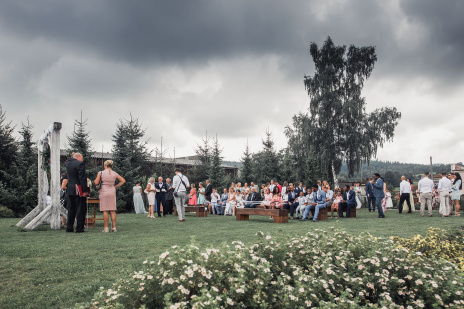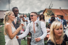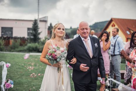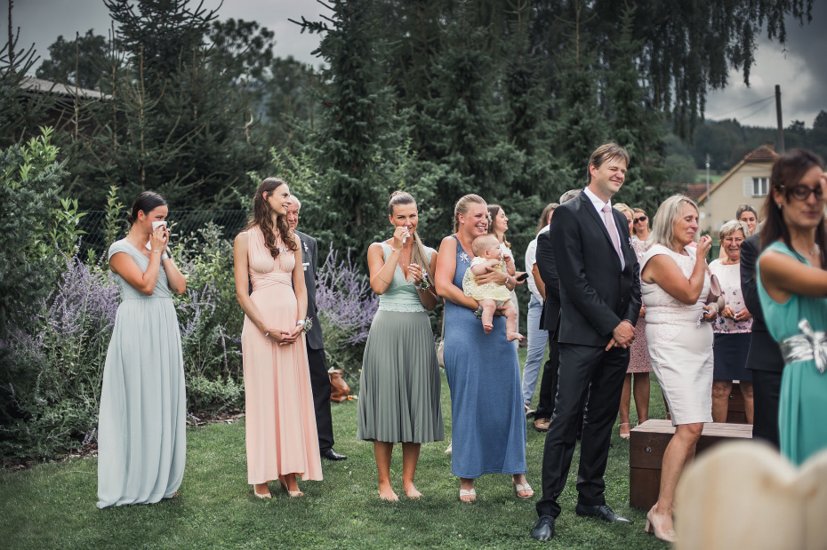Na obřad bylo střídavě zataženo a slunečno. A to i z hlediska emocí - smích i slzičky štěstí.. přesně tak to má být. Během hostiny přišel intenzivní déšť a po jeho odeznění jsme se vydali fotit portréty. Na svatbě to téměř nikdy nejde dle pláno ;-)