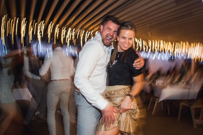 Pak už pokračovala svatební párty. Tu dokumentuji já a manželka Alča Tvarohová se věnuje hostům ve svém fotokoutku.