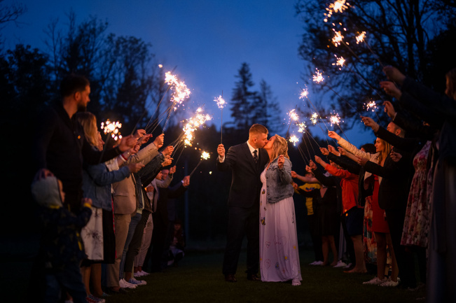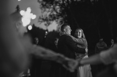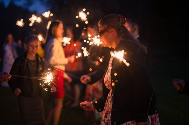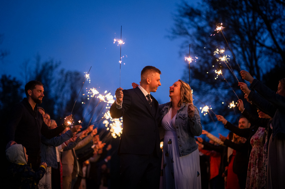 Večer vyvrcholil tancem pod širým nebem, kdy se k novomanželům připojili všichni svatebčané. Krátce po setmění, za svitu prskavek, jsme zachytili poslední záběry tohoto výjimečného dne. Svatební den Terezy a Daniela byl plný emocí, smíchu a lásky, a my jsme rádi, že jsme mohli být jeho součástí a zaznamenat každý vzácný okamžik.