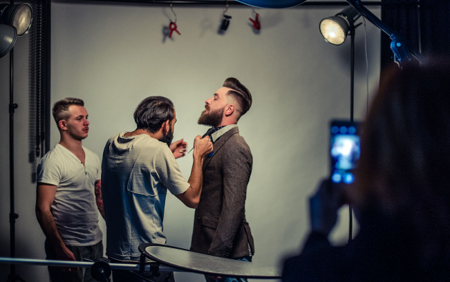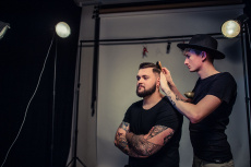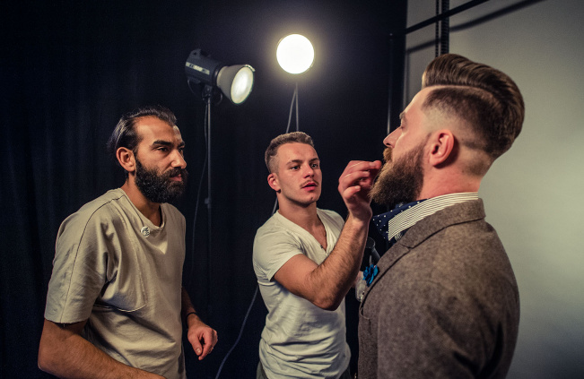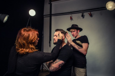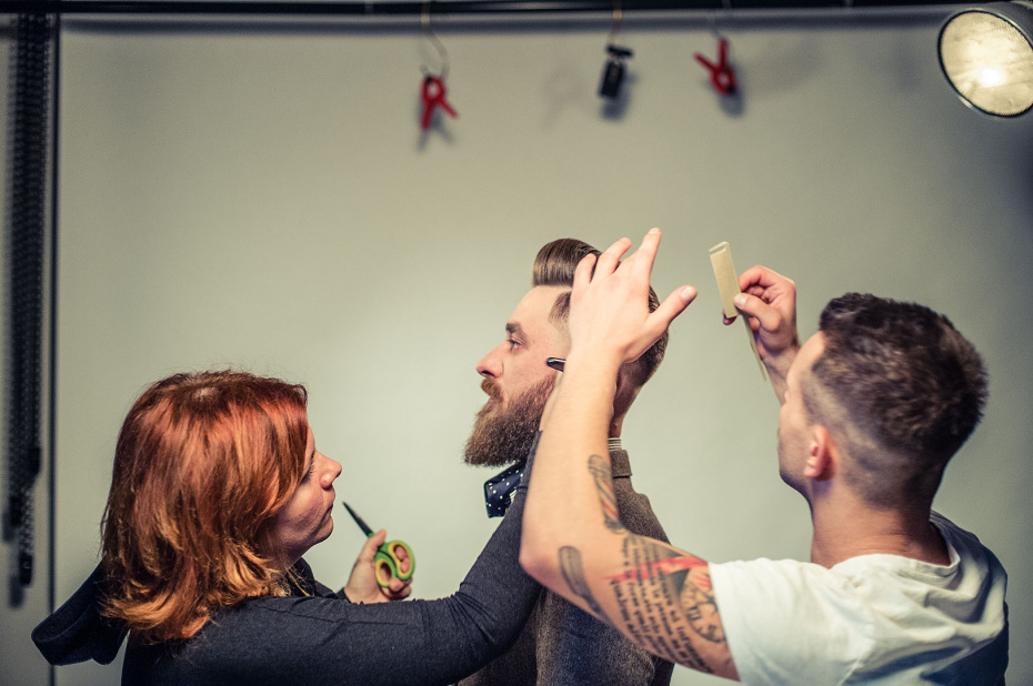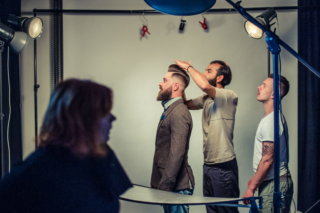 První sobotu v listopadu mi fotografické studio, chodbu a další prostory obsadili lazebníci z barber shopu Wous. Naštěstí po nich moc vousů na podlaze nezůstalo - modelové (jejich zákazníci) byli již připraveni z předchozího dne. Probíhal jen styling a drobná finalizace.